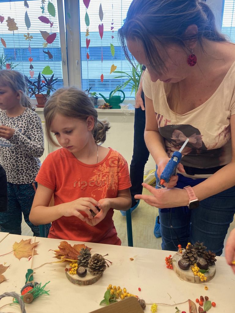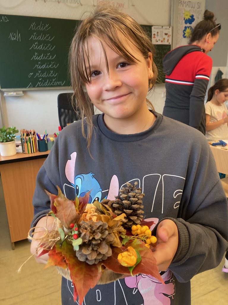 Čtvrteční odpoledne 17.10. se žáci 3.B a jejich rodiče spolu pustili do vyrábění podzimních dekorací. Nejenom, že si domů odnesli dekoraci na stůl, do květináče nebo keramickou misku, ale hlavně si užili společný čas a s ostatními sdíleli radost z krásných výtvorů. Bylo to opět velmi příjemně strávené odpoledne a těšíme se na další.