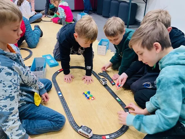 Žáci 2.B se po vysvědčení vydali do Království železnic, kde propojili příjemné s užitečným. Hravou formou se naučili, jak překonávat nástrahy města jako chodci a účastníci provozu. Na modelech si vyzkoušeli různé situace, se kterými se mohou v rámci dopravy ve městě potkat. Samozřejmě zůstalo i dost času na volnou zábavu.