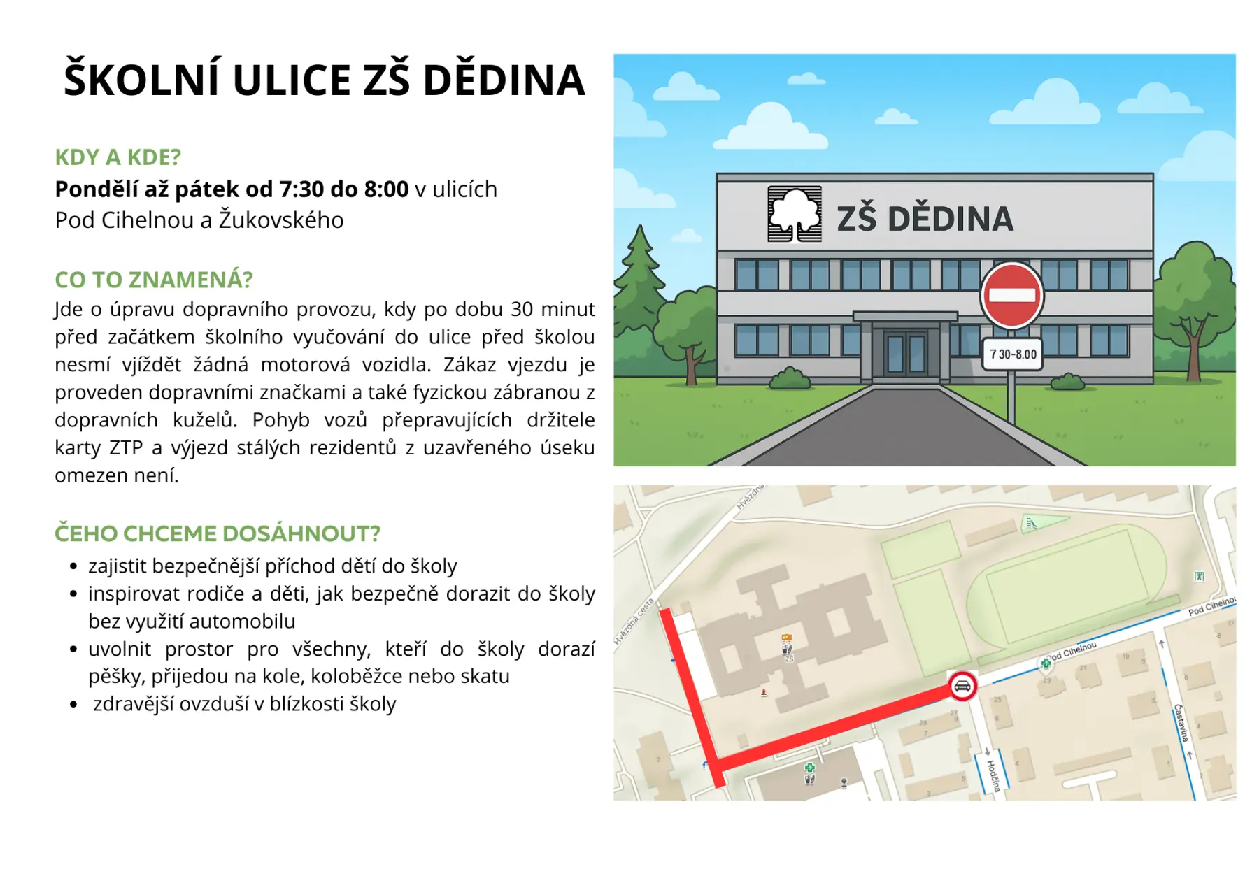 V ulicích Pod Cihelnou a Žukovského začal od září platit status školní ulice. Jde o úpravu dopravního provozu, kdy po dobu 30 minut před začátkem školního vyučování do ulice před školou nesmí vjíždět žádná motorová vozidla. Zákaz vjezdu je proveden dopravními značkami a také fyzickou zábranou z dopravních kuželů. Pohyb vozů přepravujících držitele karty ZTP […]