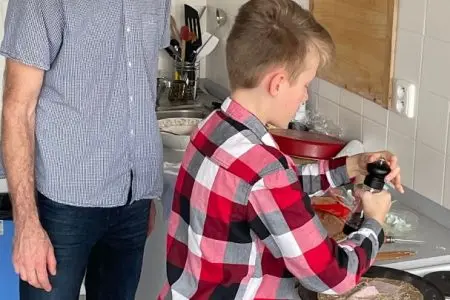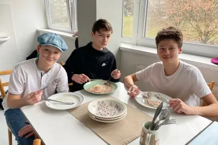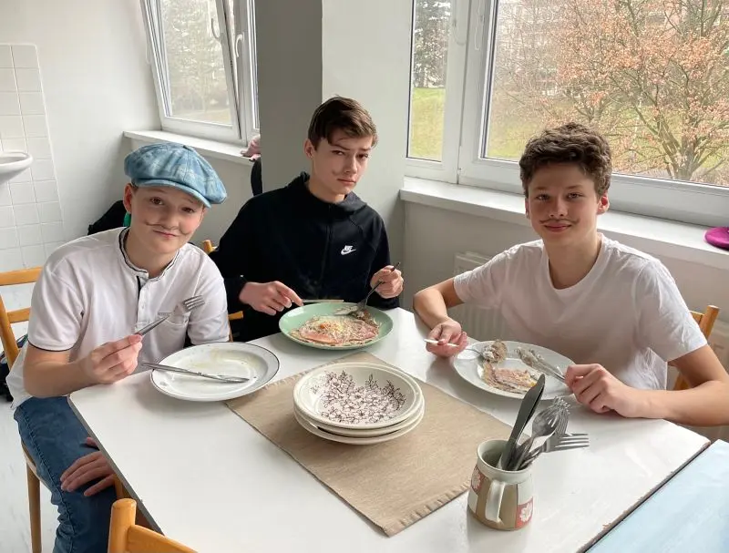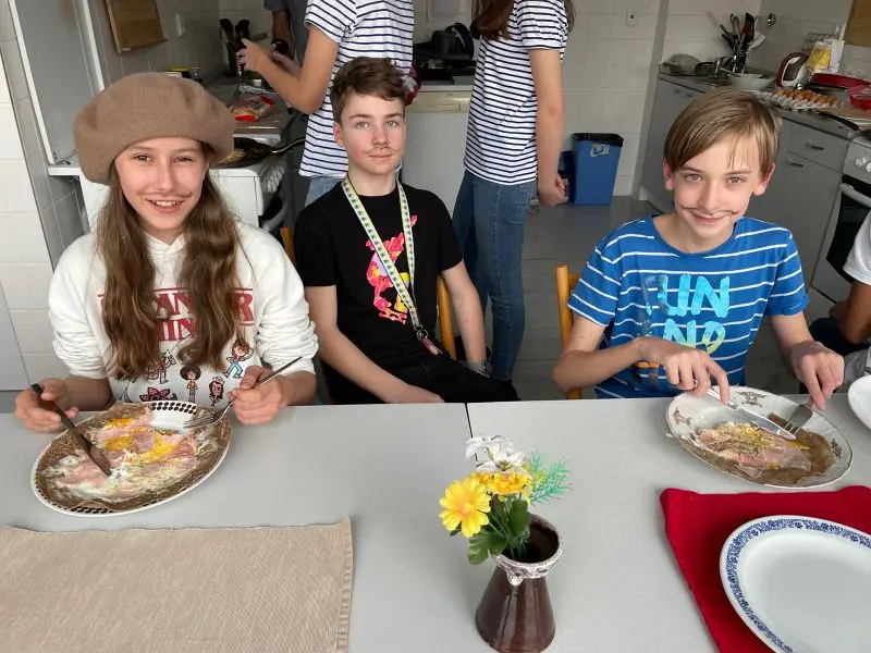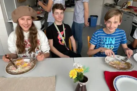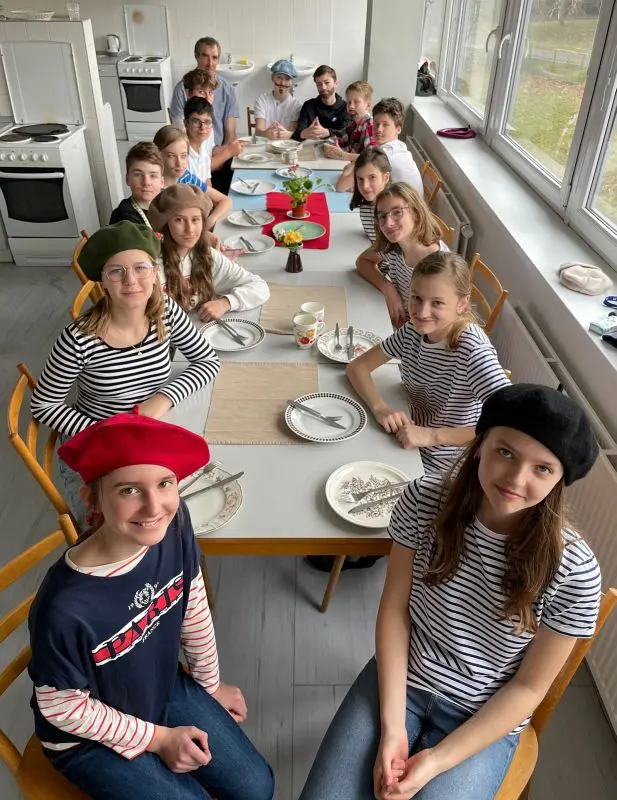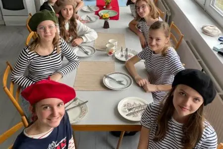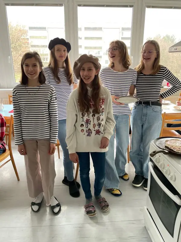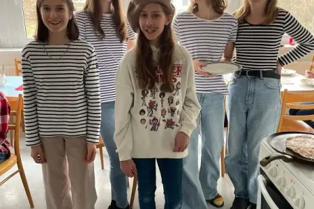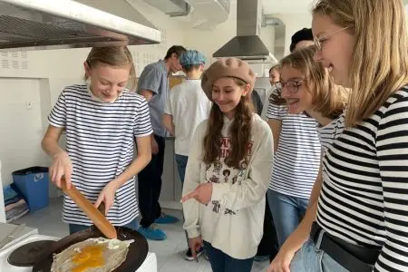 V pátek 1. března se francouzštináři ze 7.A seznámili s bretonskou kuchyní pod vedením Gaëla, rodáka z Bretaně. Ochutnali tamní speciality – sladké palačinky a slané galettes, které i sami připravovali. Gaël v mezičase odpovídal dětem na otázky ohledně zmíněného regionu i svého života v České republice. Kulinářské dopoledne a pomyslnou cestu do Francie pak uzavřelo několik bretonských písní. Dopoledne plné zážitků jsme si všichni moc užili.