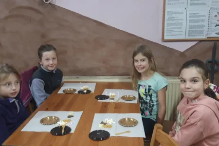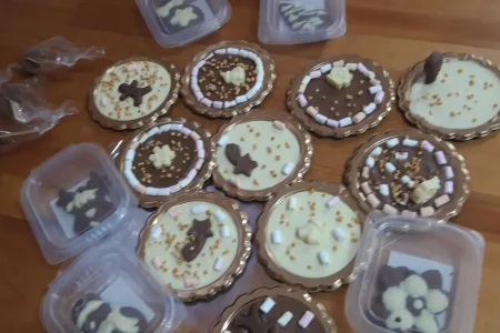 Návštěva čokoládové dílny v Šestajovicích byla zajímavá a příjemná. Děti se dozvěděly, z čeho a jak se vyrábí čokoláda, a byly překvapené délkou a náročností celého procesu. V dílně si samy odlily čokoládu do mističek a zdobily ji oříšky a dalšími dobrotami. Všechny výrobky si pak ozdobně zabalily. Na závěr si pochutnaly na tekuté čokoládě.