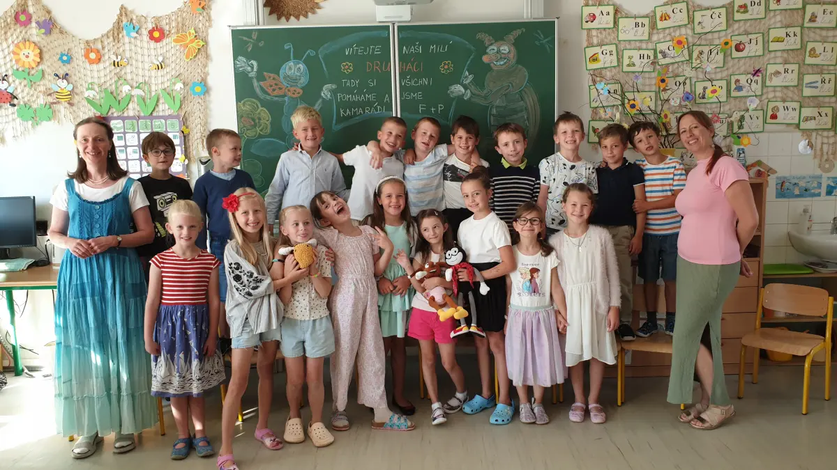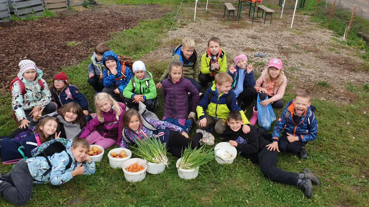 Od loňského roku se staráme o naše třídní políčko v nedalekém areálu výzkumného ústavu. Na podzim jsme sklidili cibuli, mrkev, česnek a vykopali naše vlastní brambory, které jsme si ve školní kuchyňce upekli a snědli.