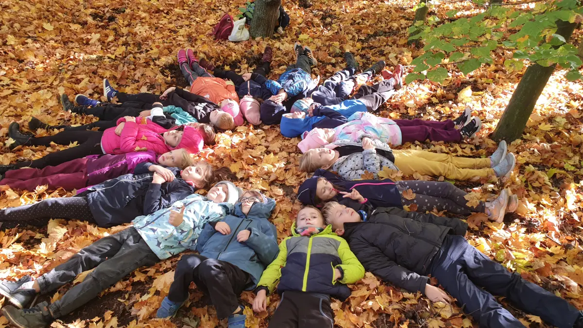 Den stromů jsme oslavili vycházkou do Divoké Šárky, kde jsme určovali druhy stromů. Také jsme si užili zábavu s podzimními listy.