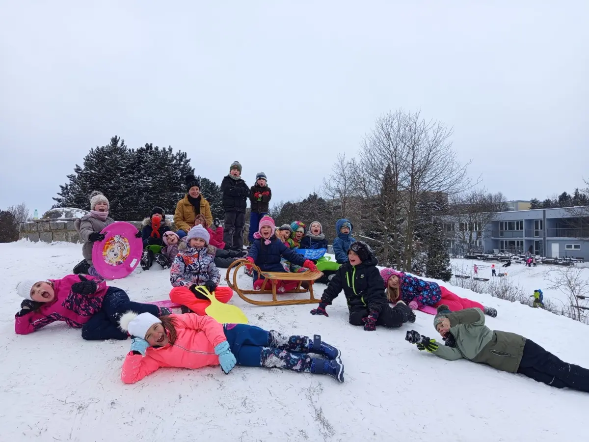 Hurá, napadl nám sníh. Tak jsme měli tělocvik na sněhu – využili jsme sněhové nadílky a náruživě jsme bobovali a lopatovali.