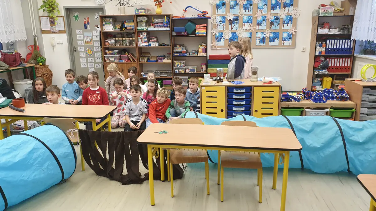 V lednu jsme se společně s paní z programu Cesta vody vydali po stopách vody od jejích přírodních zdrojů přes vodárnu až po kohoutek. Sami jsme se stali “kapkou vody” a na vlastní kůži jsme si vyzkoušeli, jaké je to cestovat potrubím a jak se voda čistí.