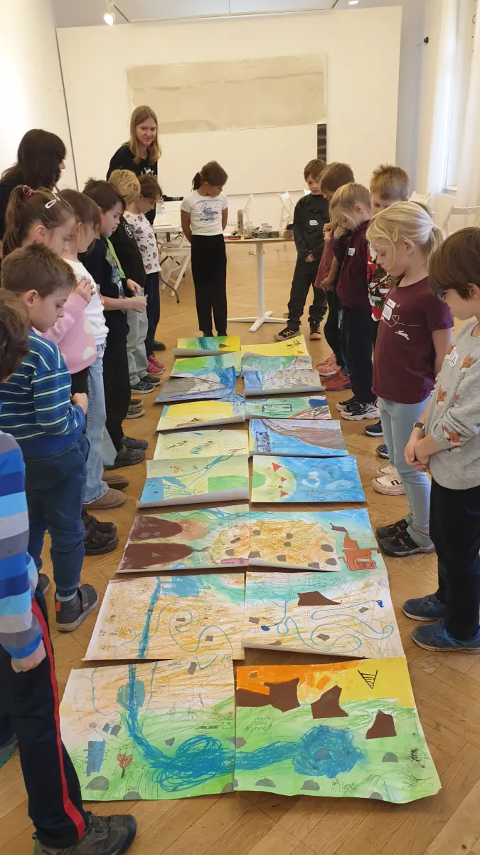V půlce listopadu se naše třída vydala na celé dopoledne do Villy Pellé, kde byl pro děti připraven výtvarný program. Děti malovaly na velkém formátu společnou barevnou mapu světa. Potom každý sám rozkreslil detail mapy podle své fantazie. Jako památku si každý na konci odnesl jednu část ze společné práce.