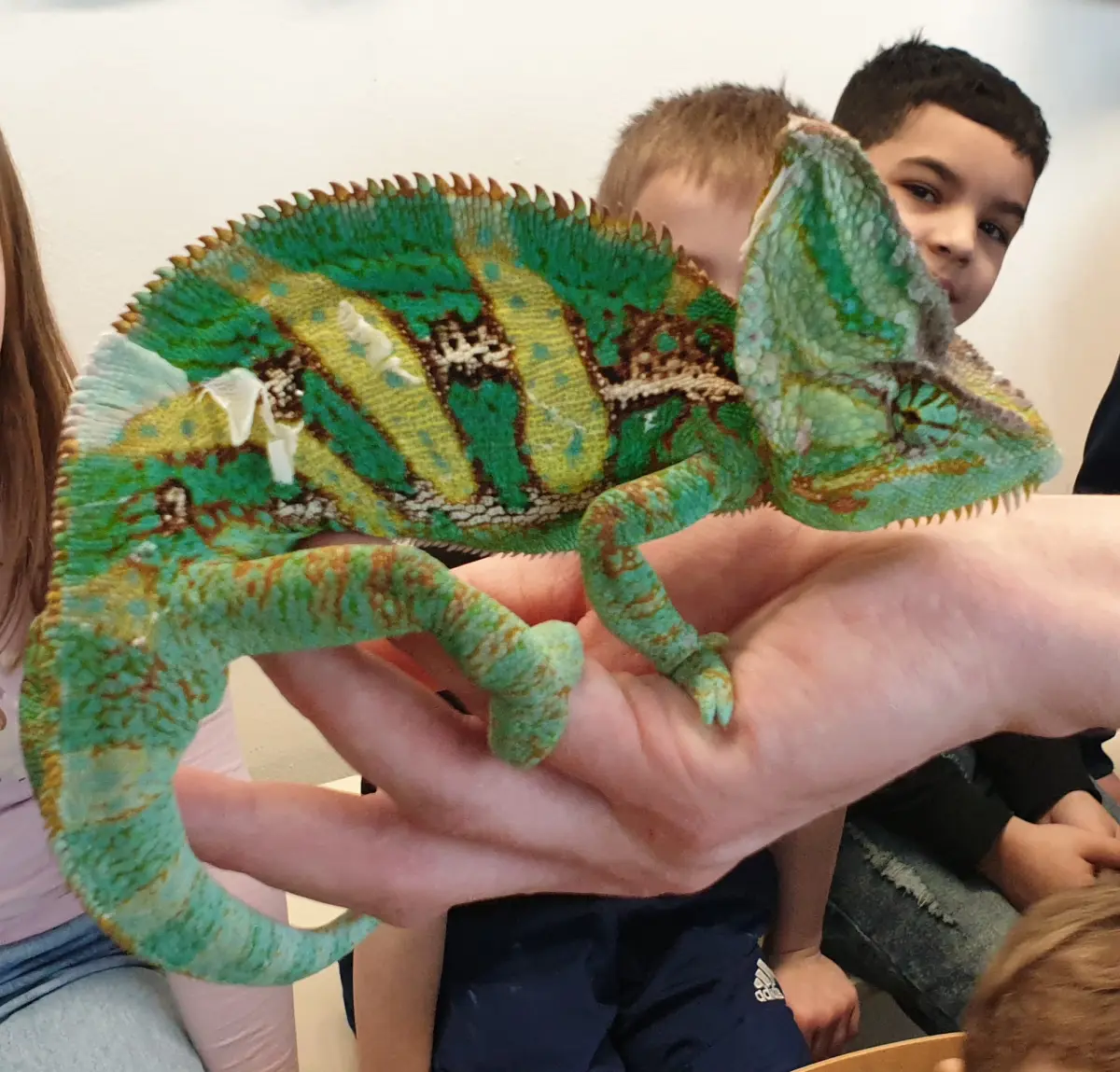 Do naší školy zavítali učitelé z přírodovědecké fakulty a z kladenské školy. Vyprávěli nám o tom, proč a jak se zvířata maskují. Na ukázku jich pár přinesli s sebou – včetně krajty královské a chameleona.