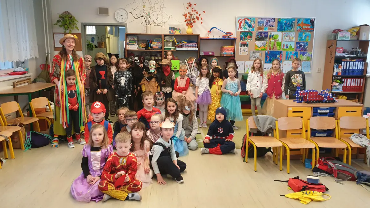 I letos jsme si báječně užili masopustní průvod masek, hry v tělocvičně, vyrábění, trefovačku na klauna a hlavně tanec, zpěv a bitvu s toaletním papírem.