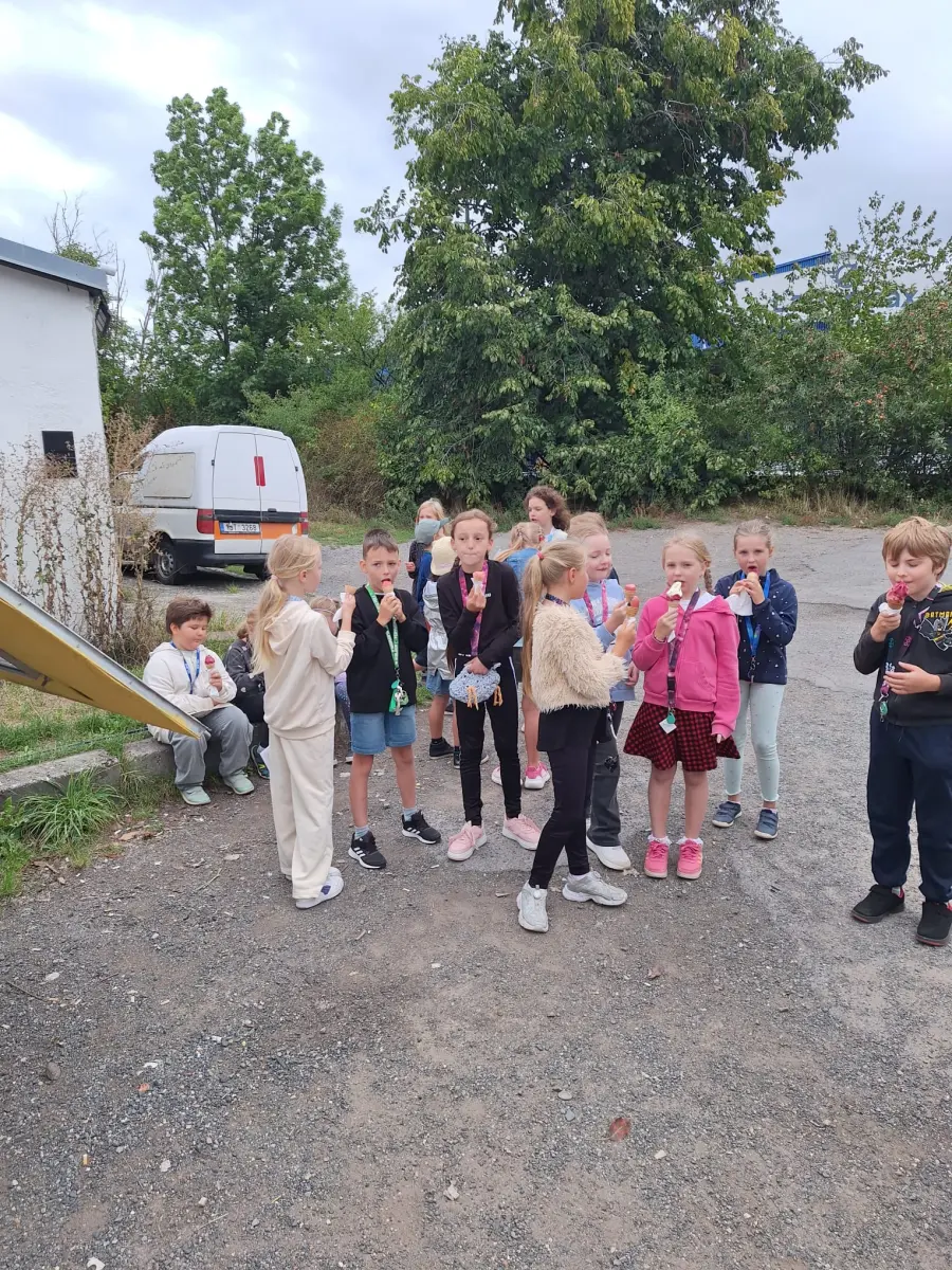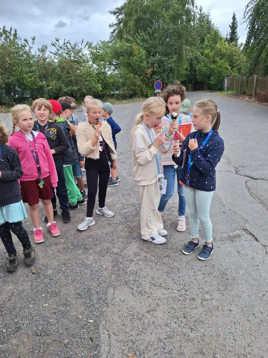 Na začátku školního roku paní učitelka vzala svou třídu na odpolední procházku po okolí školy až k vyhlášené zmrzlině. Děti měly možnost se navzájem poznat a užít si společný veselý čas venku.