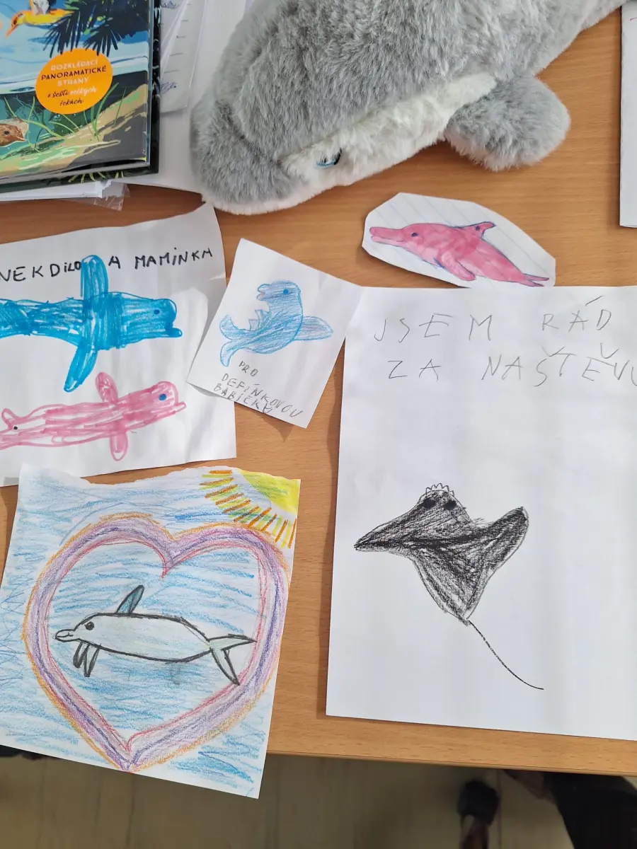 V podvečer nás navštívila paní spisovatelka a překladatelka knih o Dilovi, našem delfínkovi. Povídali