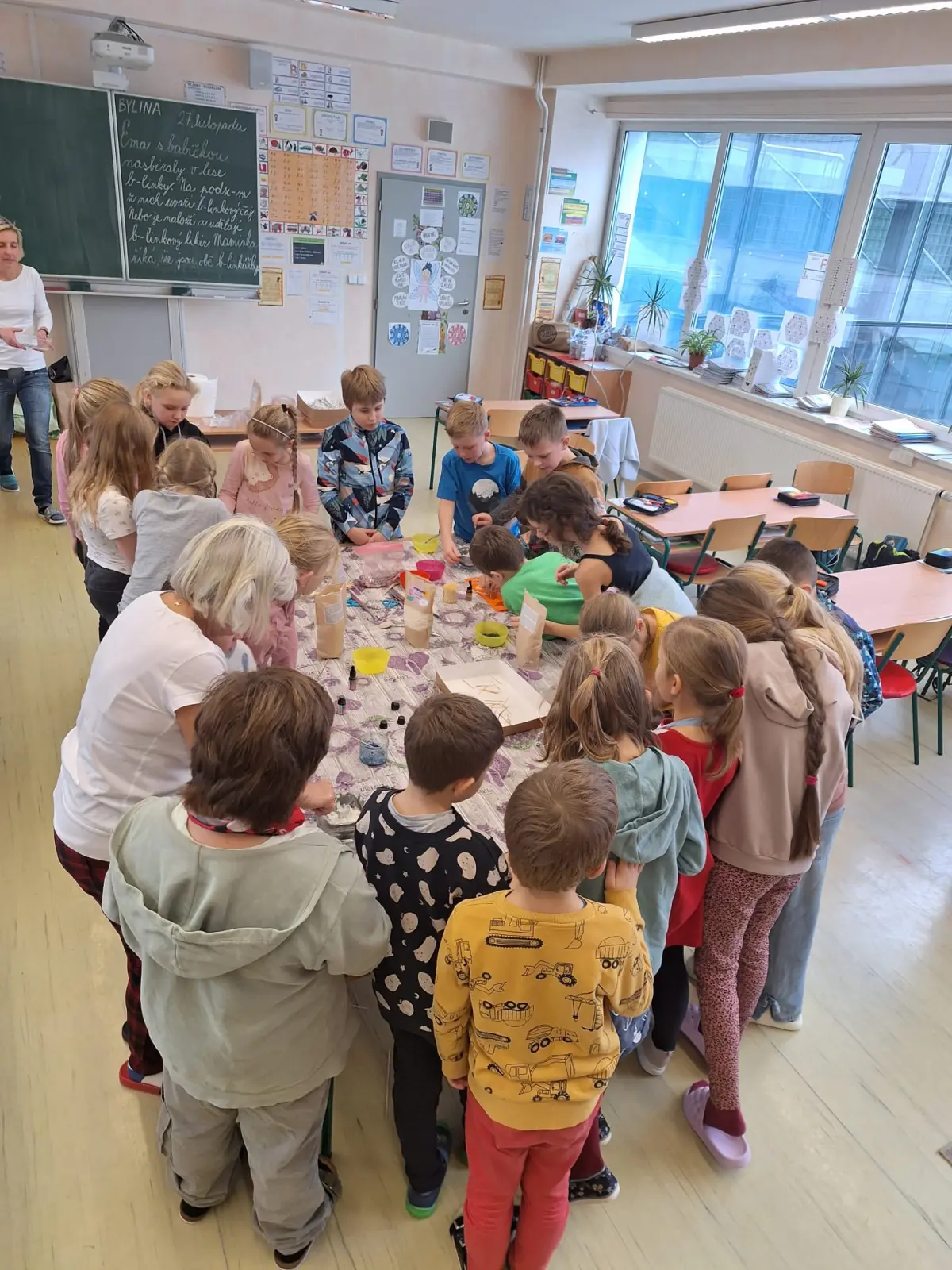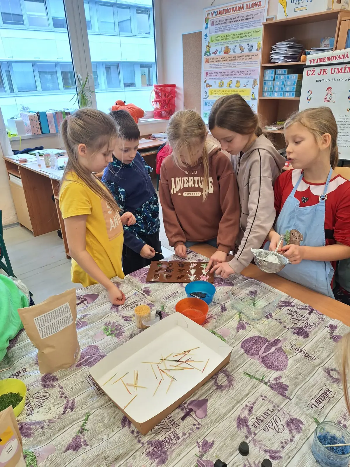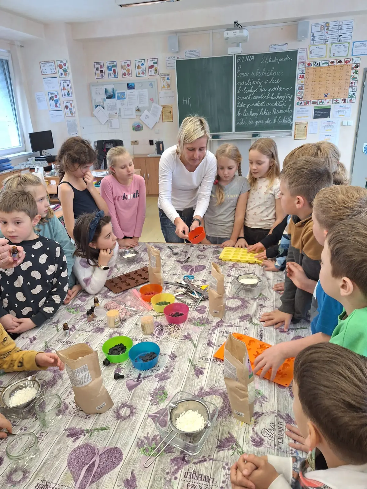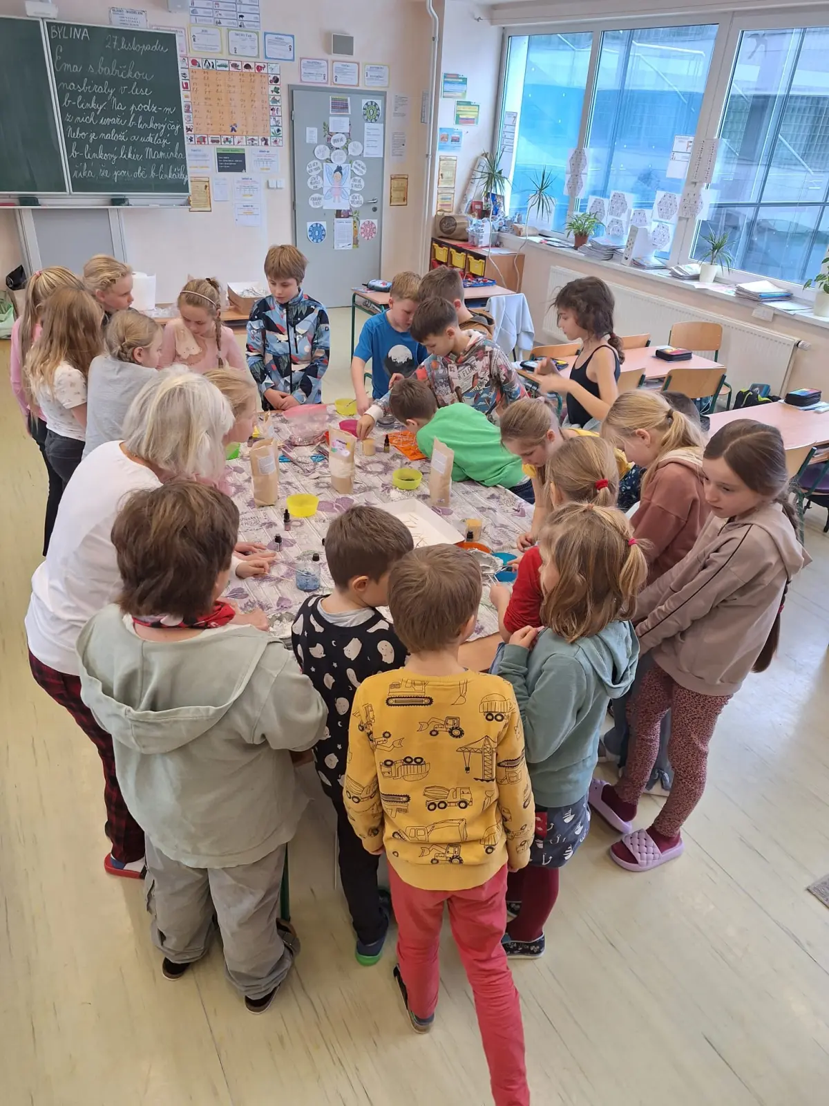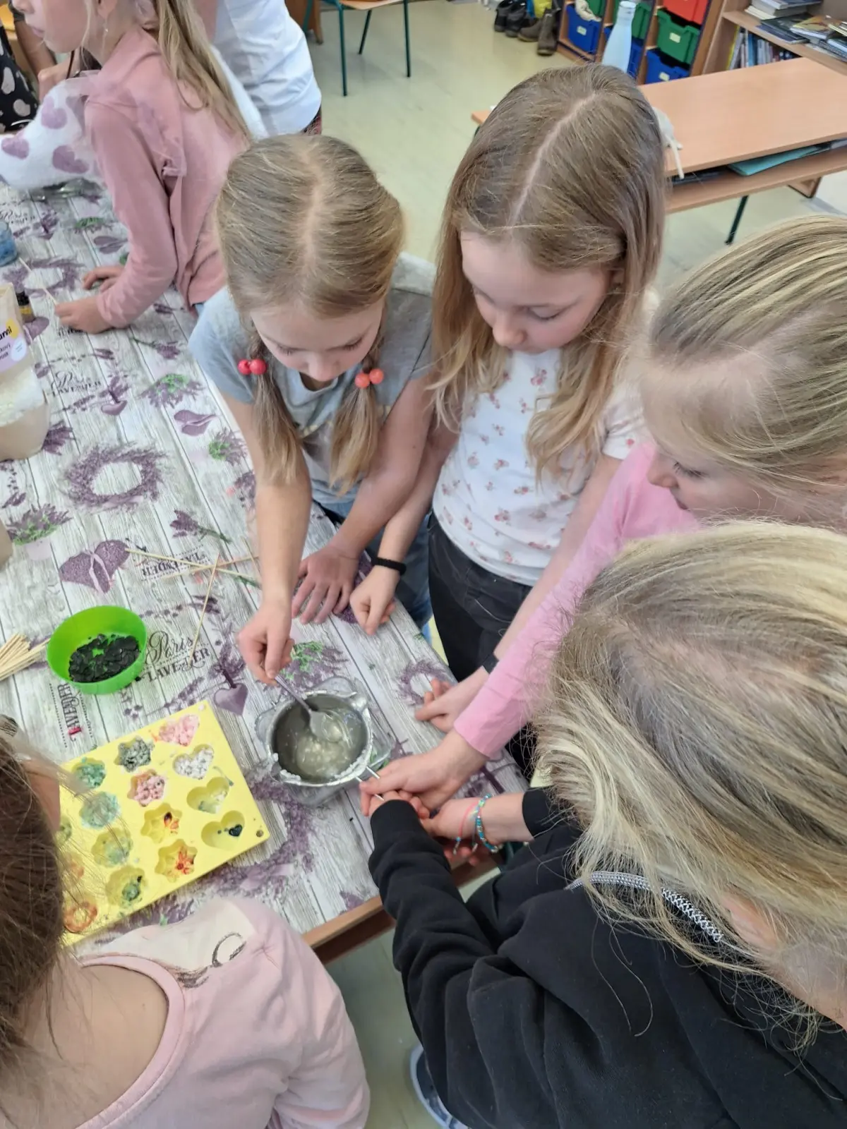 Děti se zapojily do výroby svíček, které byly určeny k prodeji. Práce je bavila a zároveň si vyzkoušely,