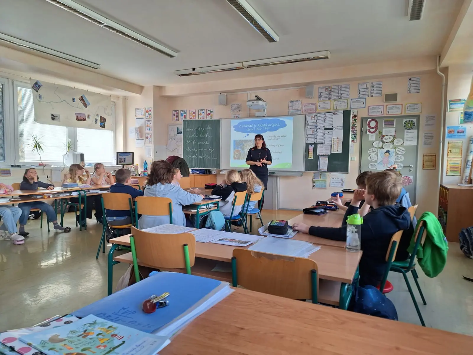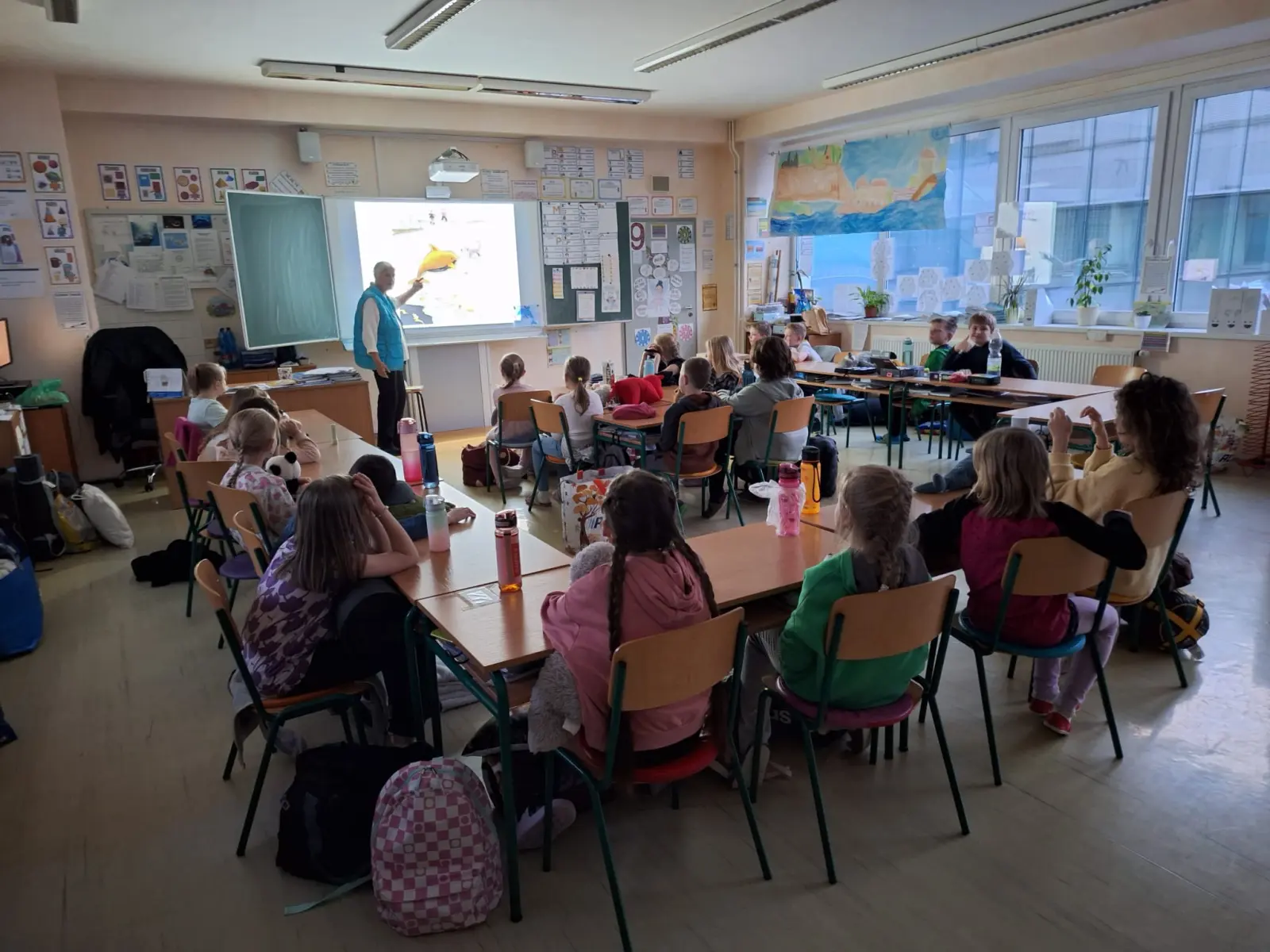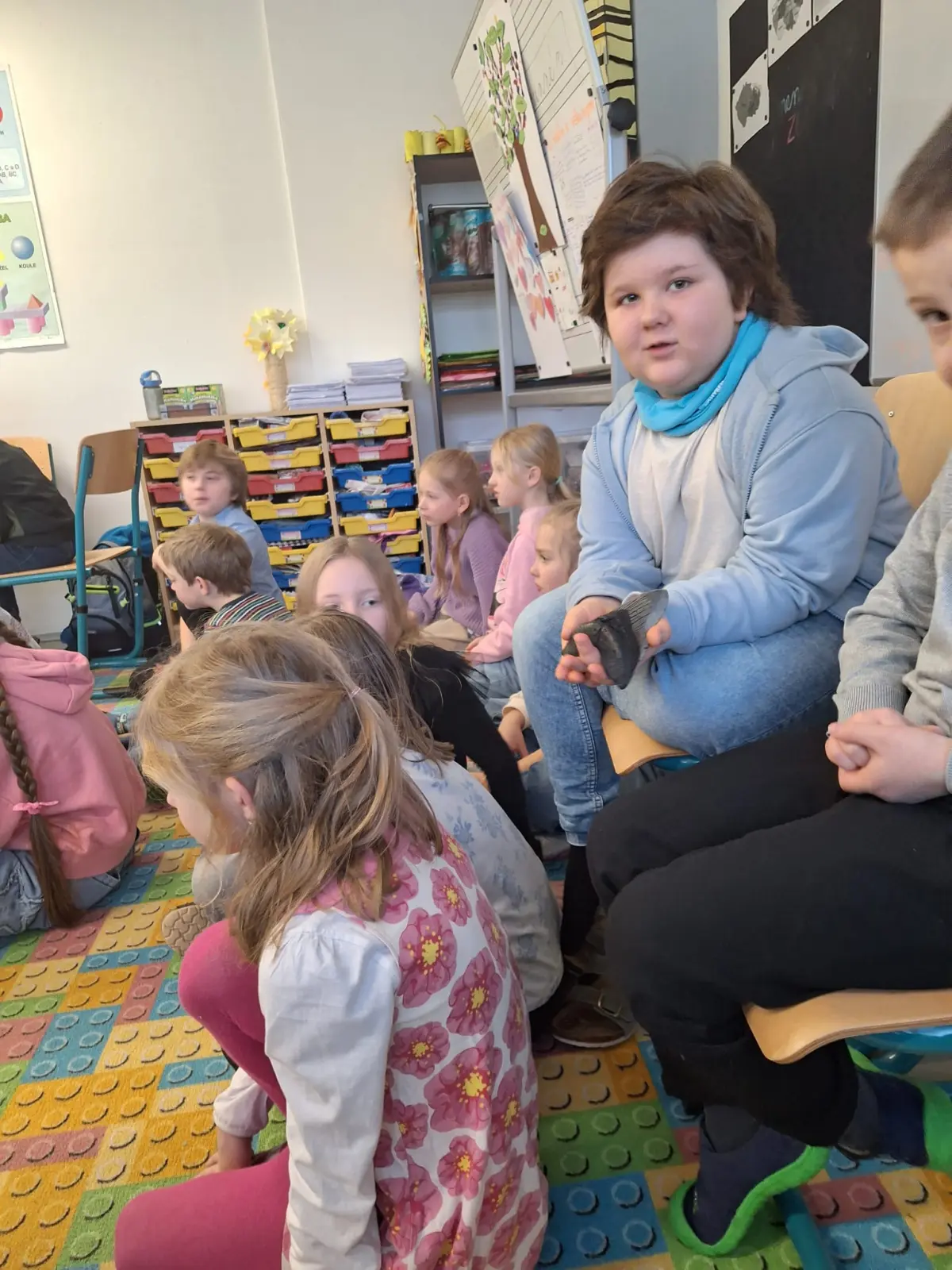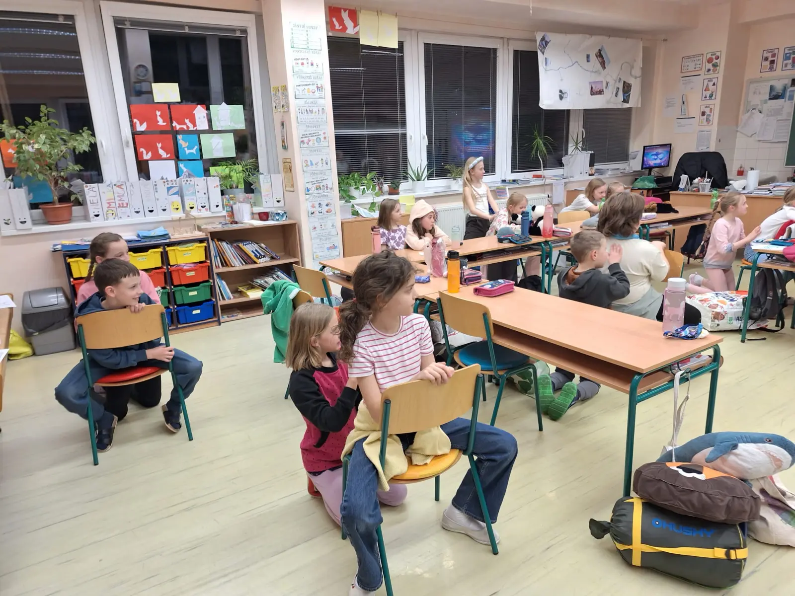 Dnes 7.4. jsme měli návštěvu. Program „Na světě nejsi sám“ je zaměřen na primární prevenci v oblasti vztahů a psychické pohody dětí. Pomáhá předcházet šikaně, pocitům osamění a komunikačním bariérám. Podporuje empatii, vzájemný respekt a vede děti k tomu, aby věděly, že v náročných situacích mohou vyhledat pomoc.