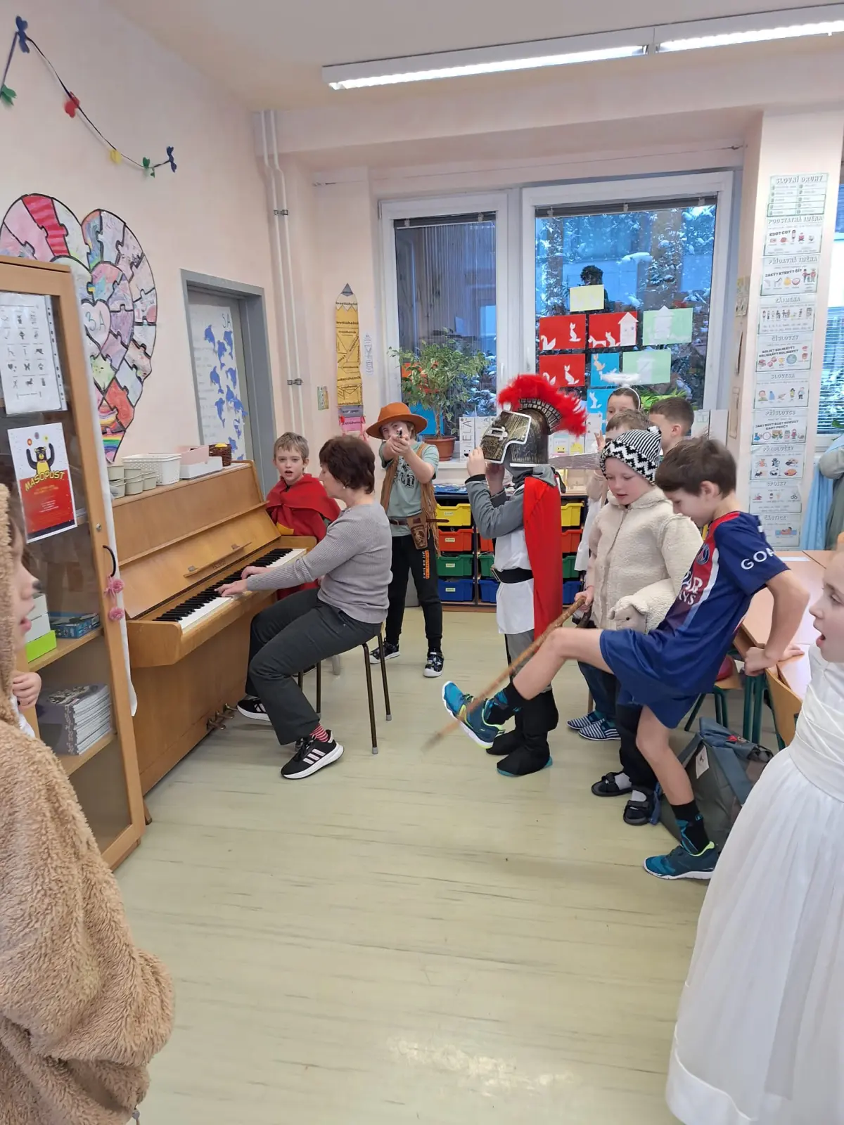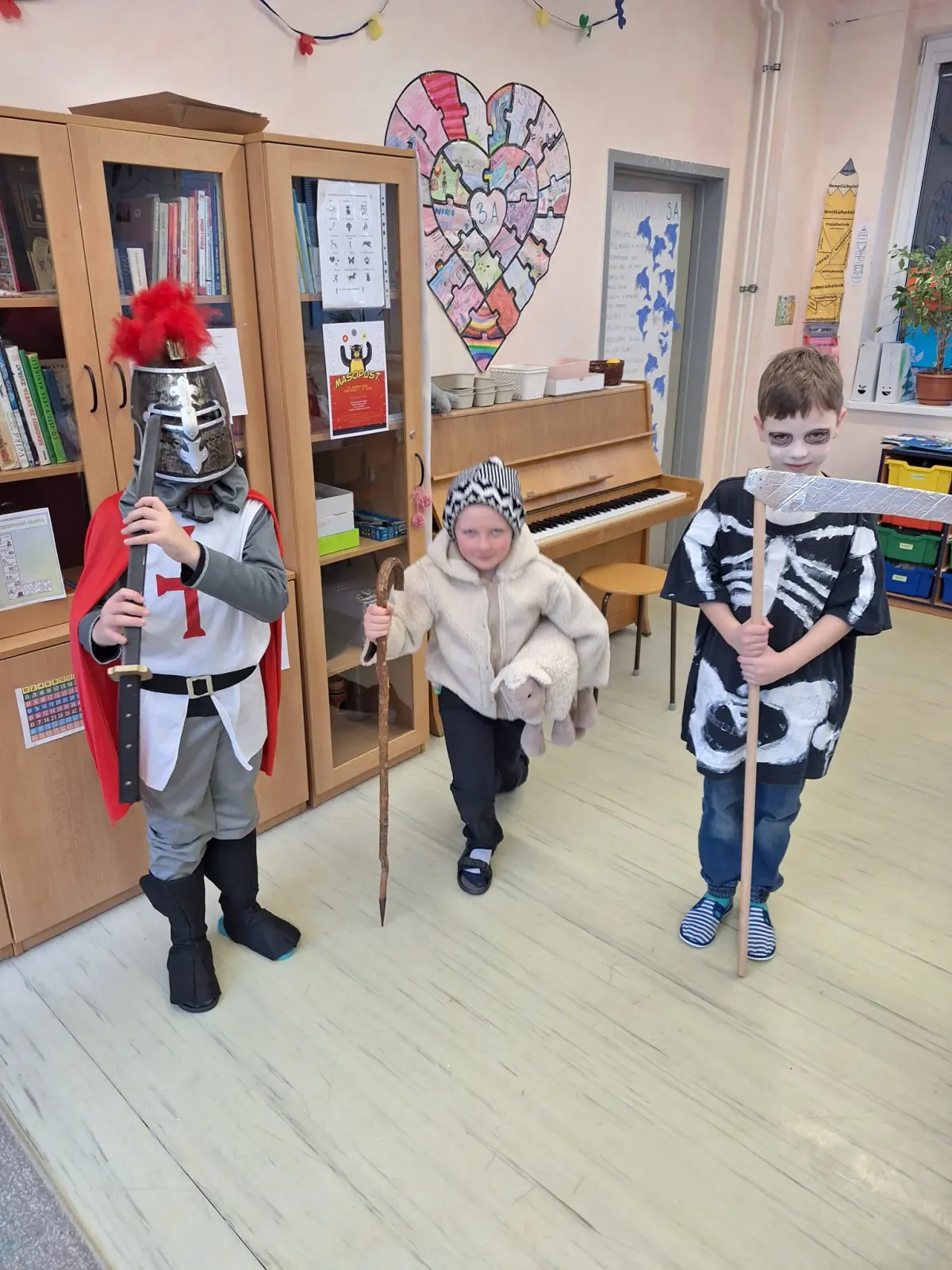 společně se vydali na veselý průvod školou za doprovodu flétny, kytary a známých písní.