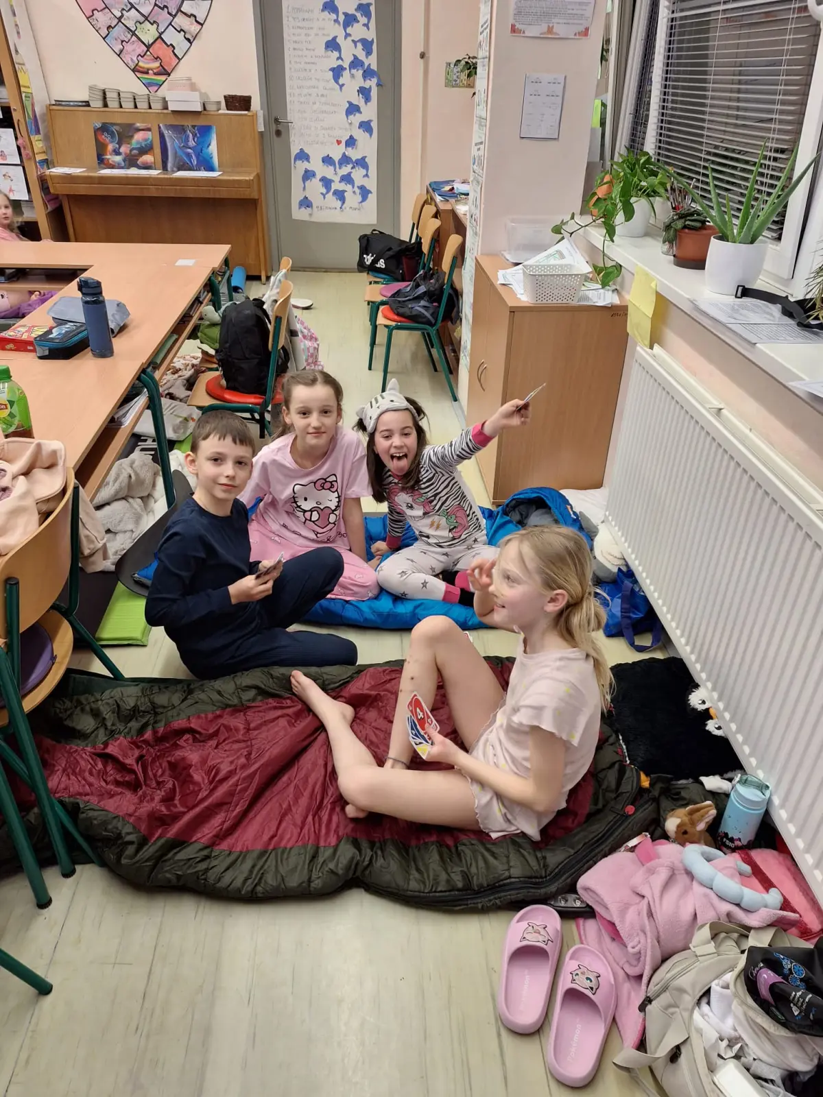 a těšili se na večerní program. Ve škole jsme také přespávali, což byl pro děti velký zážitek.
