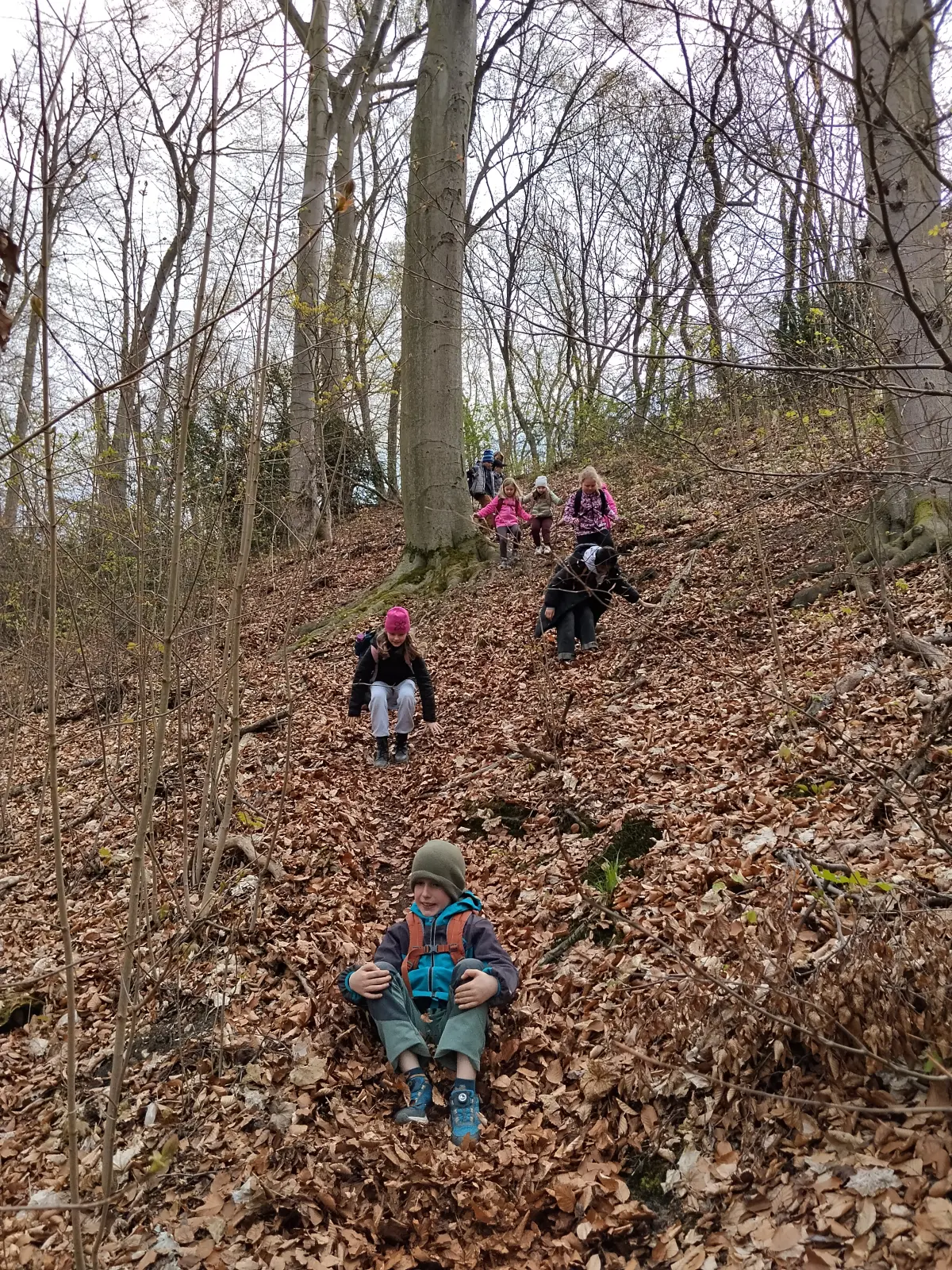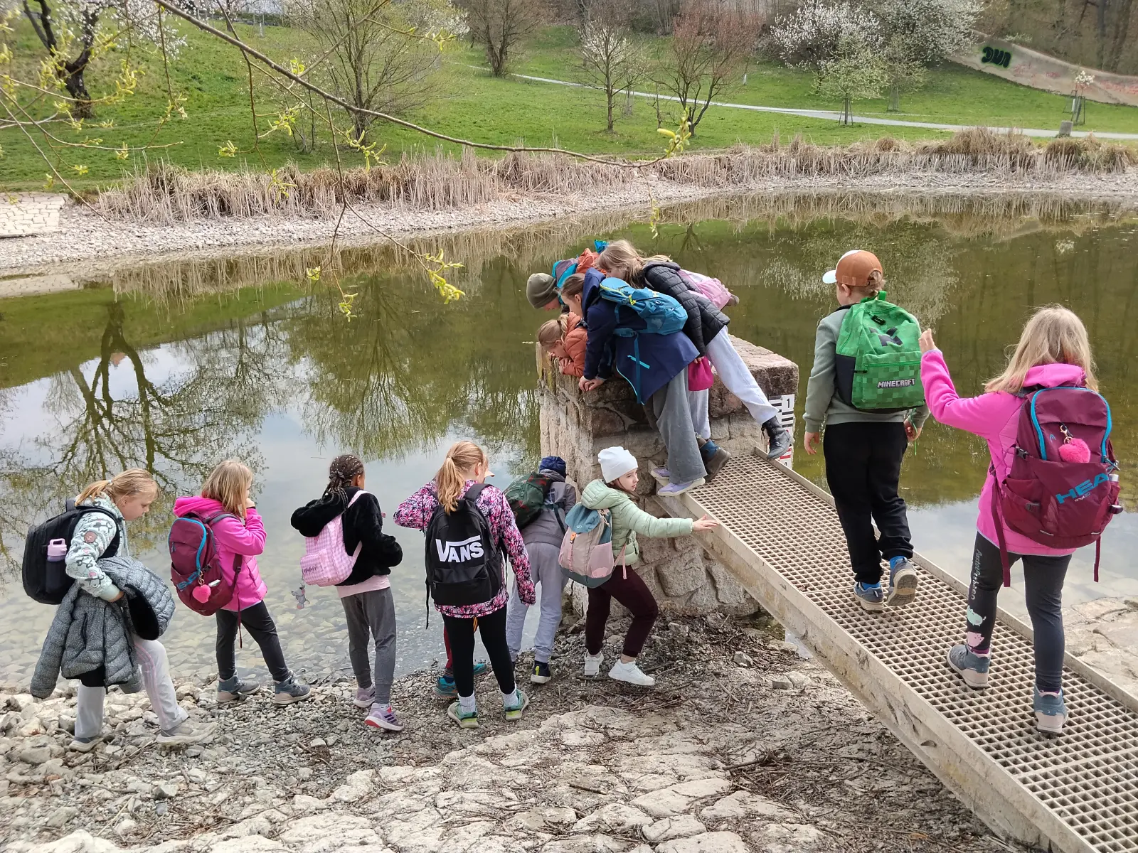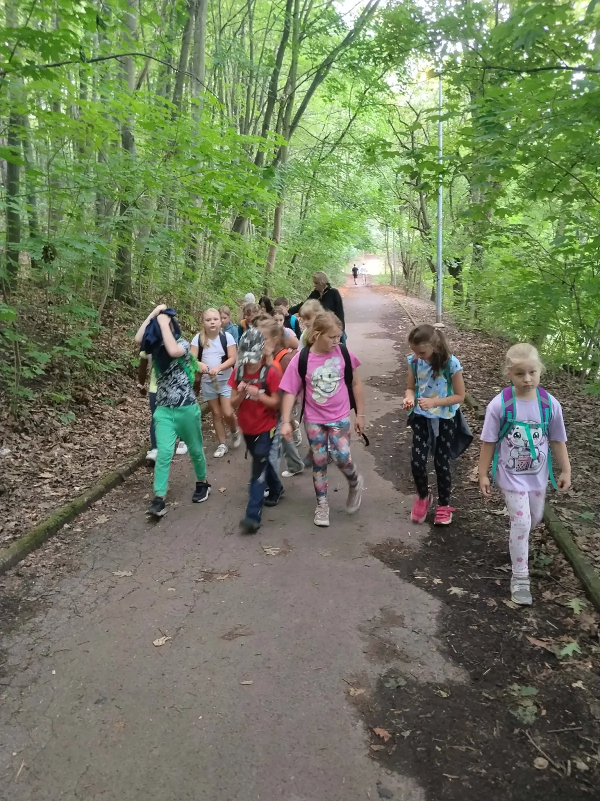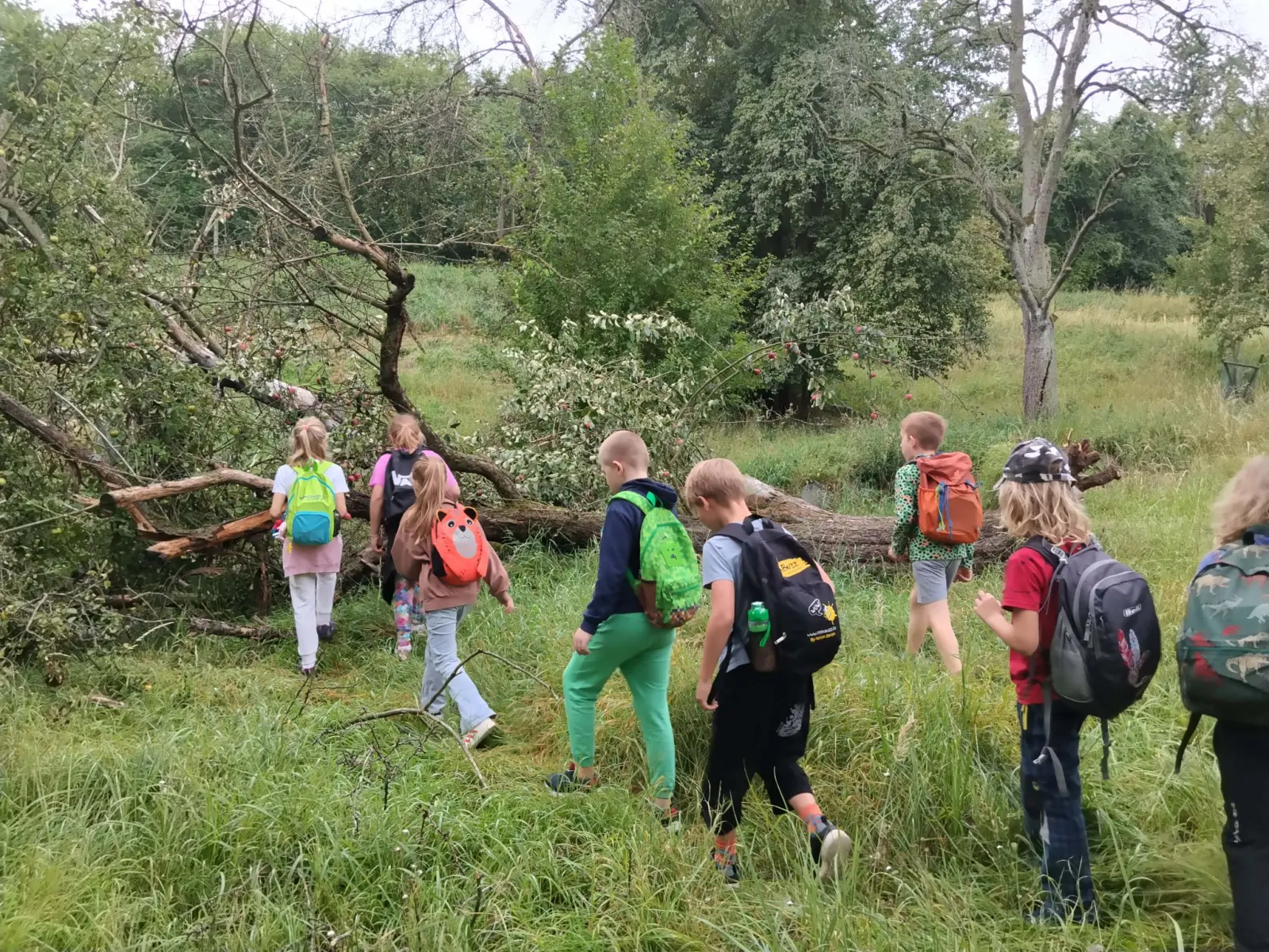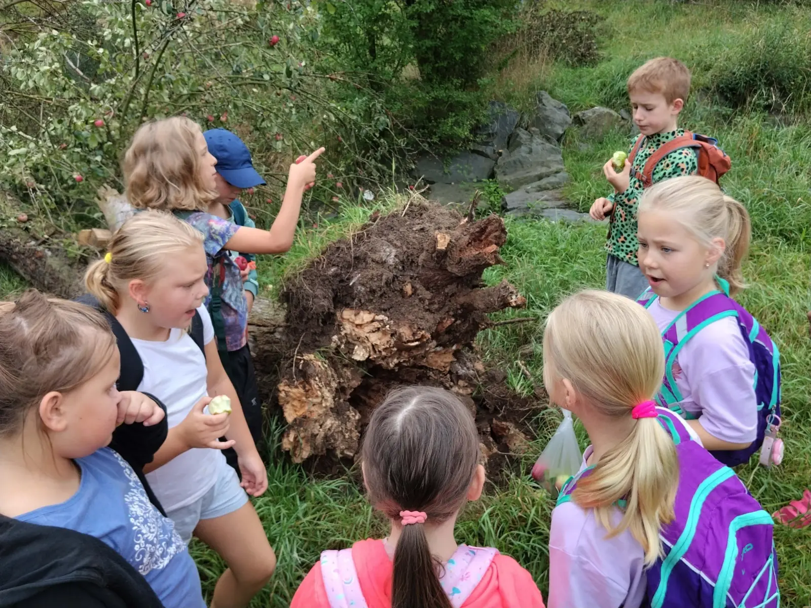 Společně jsme strávili krásný slunečný den v přírodě – vyřádili jsme se na hřišti, prošli se oborou, sjeli kopec po listí, prozkoumali pijavice v Terezce, doběhli autobus a těšili se na oběd.