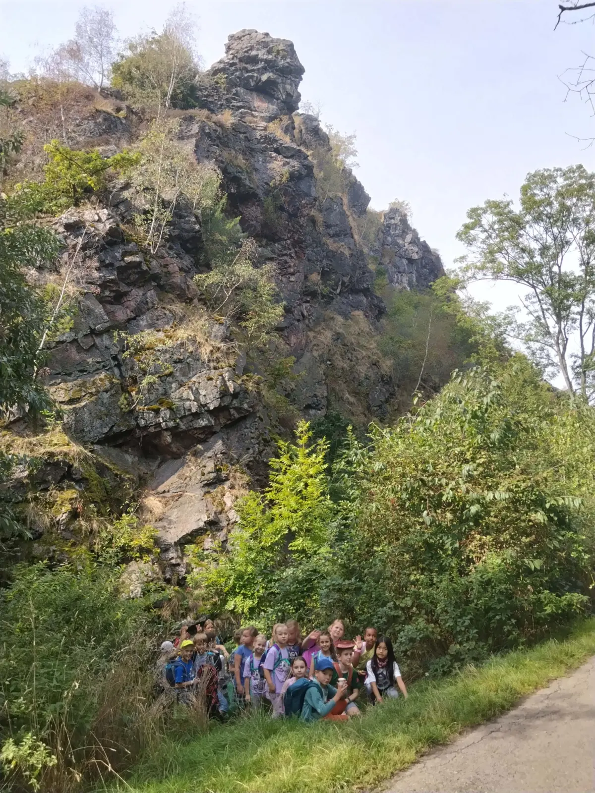 „ … První zastávka byla na Ozvěně, při cestě zpátky jsme to sborově zkoušeli, sice se to krásně valilo, ale ozvěna nic moc. Když jsem šel dál, připadal jsem si jak v muzeu. Všude byly nádherné exponáty známého umělce matky přírody. Můj oblíbený je Sklad sýrů. Vážně to tak vypadalo. Celý výlet byl úžasný. Asi po 3,5 km jsme došli do sokolího areálu. Museli jsme zmlknout, aby jsme nevyplašili sokoly od mláďat. Povedlo se! Můj exponát od sokolských sochařů připomíná nějakého knížete. Prostě se mi líbil. Všude byly rozsety cedulky s názvy. Tipl bych, že nejvíc oblíbený exponát je Mysliveček na čekané. …“ Jáchym