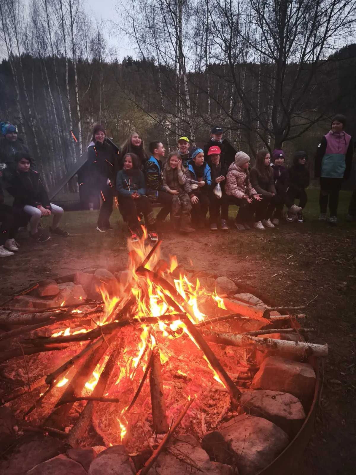 Noc proběhla v klidu. Ráno adrenalinová hodinka nad deníky a pak jsme celé dopoledne byli venku. Nevěřte předpovědím počasí – bylo krásně, i sluníčko občas vykouklo. Děti hledaly, skládaly a dramatizovaly místní pověsti. Po poledním KLIDU nás čeká zlodějská stezka. 14.00 – tak stezka nebyla, počasí se trochu zkazilo, tak jsme se šli na sníh koulovat. A večer v tělocvičně také nebyl špatný. Vrcholem dne ovšem byly buchtičky se šodó!