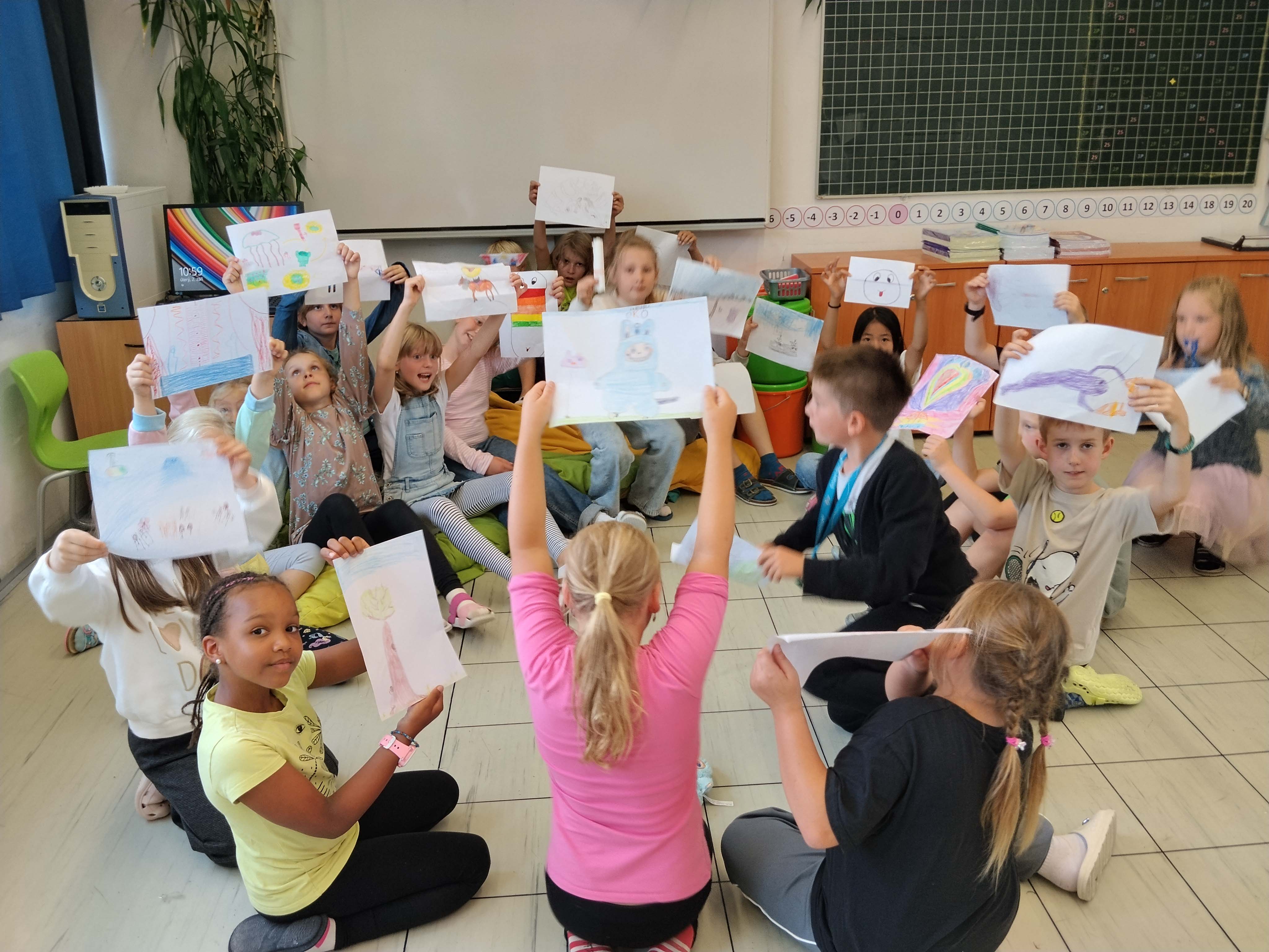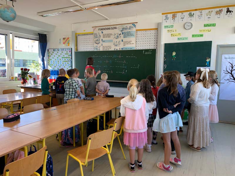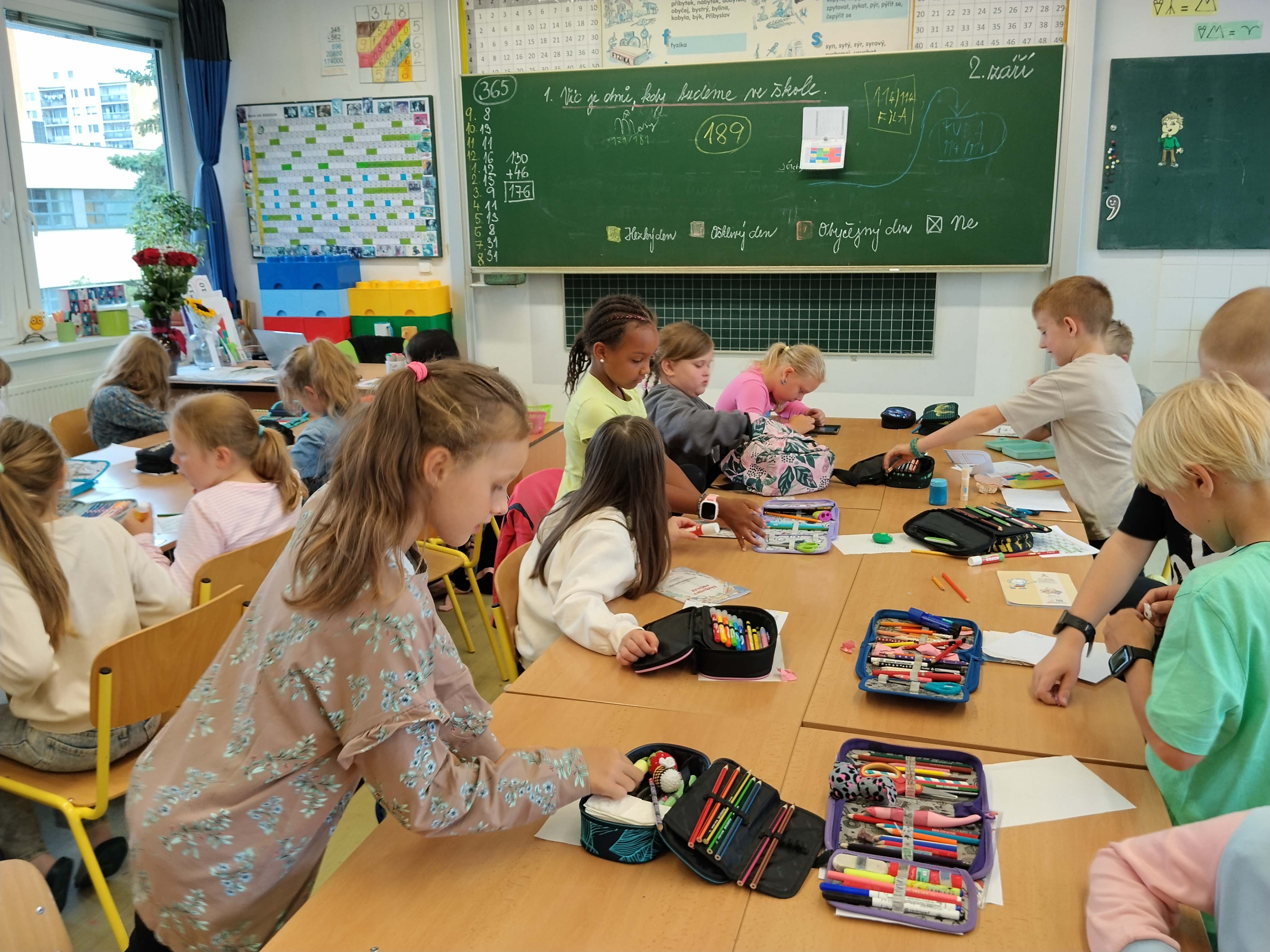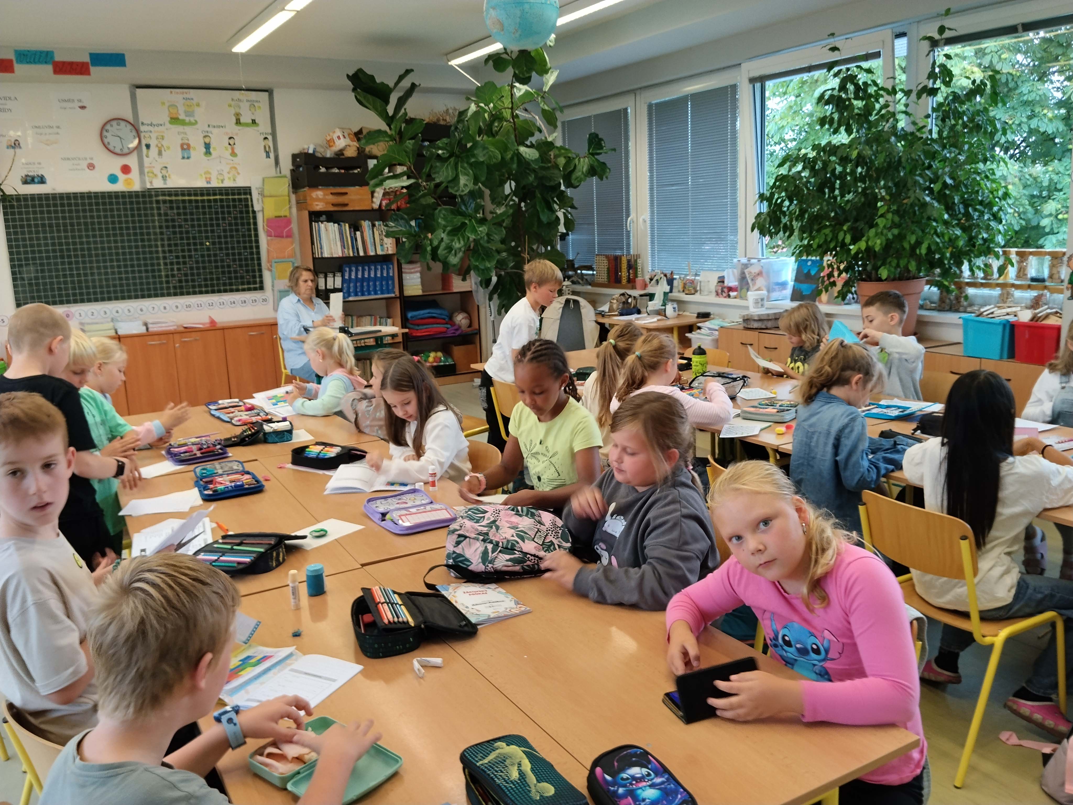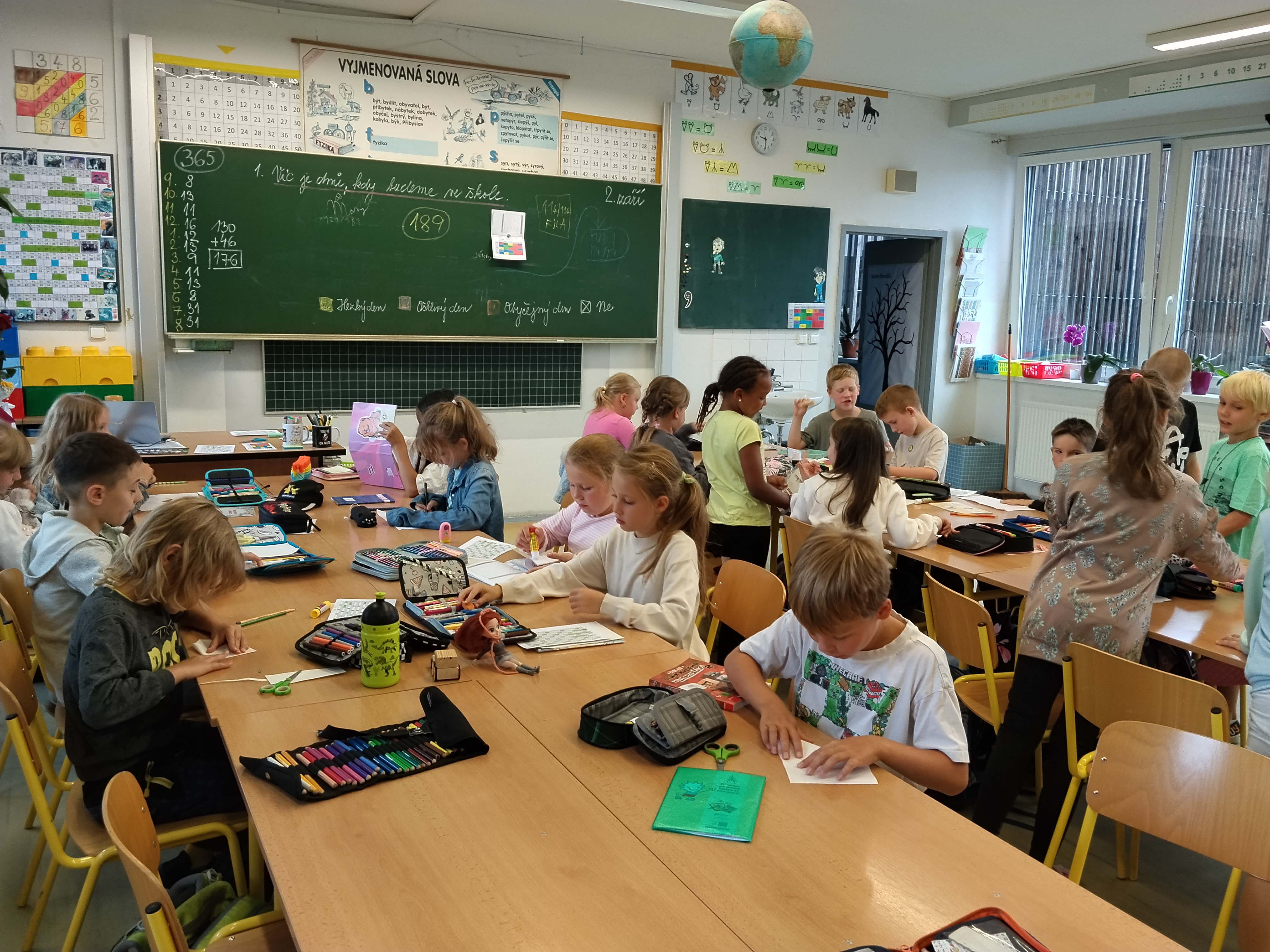 Přestože byl dnes ještě “bezrozvrhový den”, měli jsme matematiku, český jazyk, pracovní činnosti, výtvarnou výchovu, na závěr i trochu tělocviku. Měli jsme se fajn. A zítra už ROZVRH!