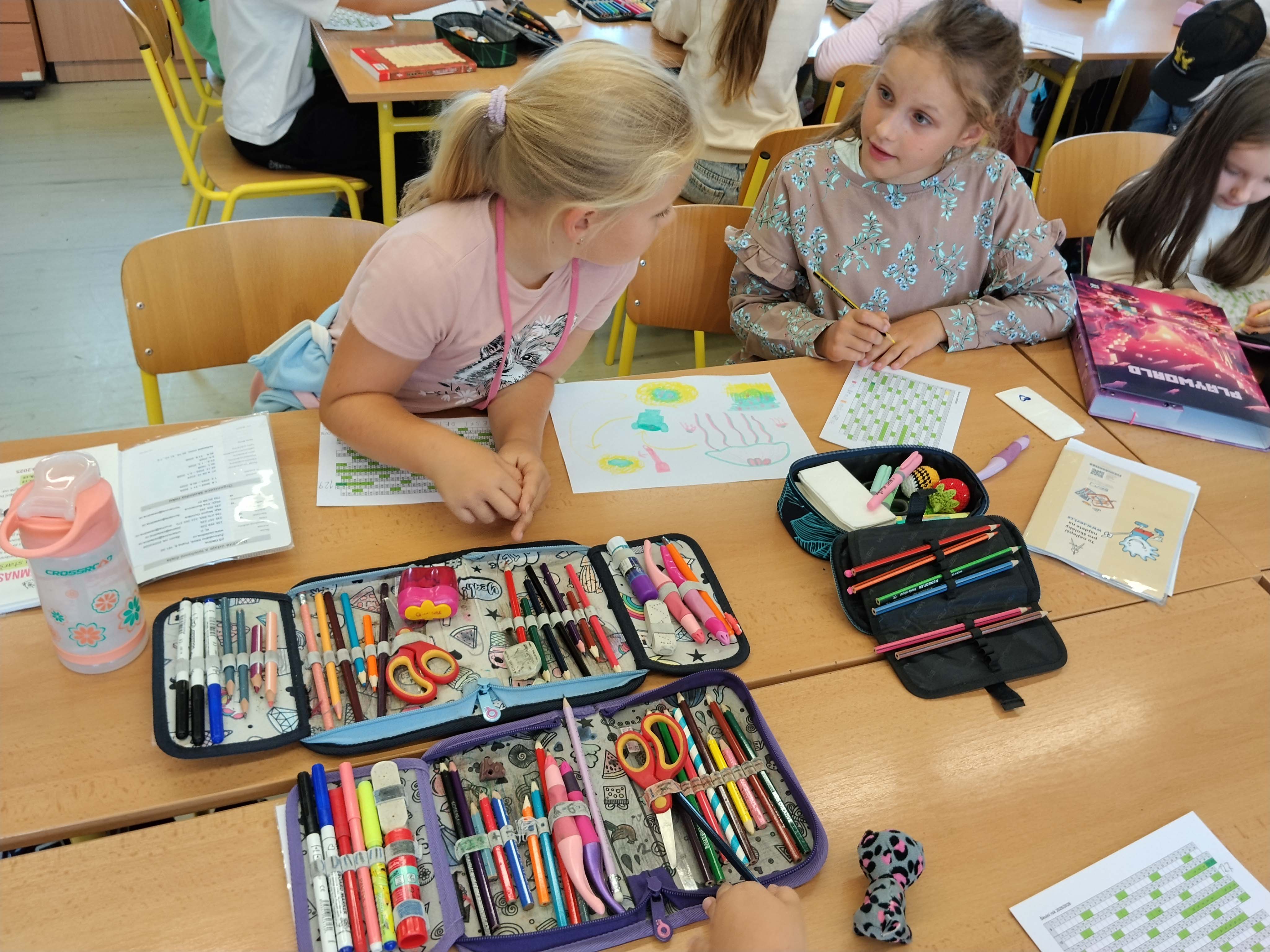 Na výuku: penál (pero, pastelky, fixy, atd.), stírací fix, pracovní sešity na matematiku a český jazyk, deník (tvrdé desky), knížku na čtení