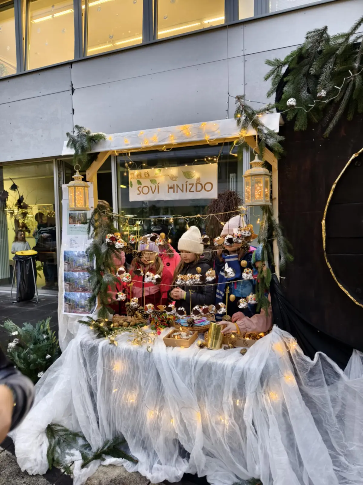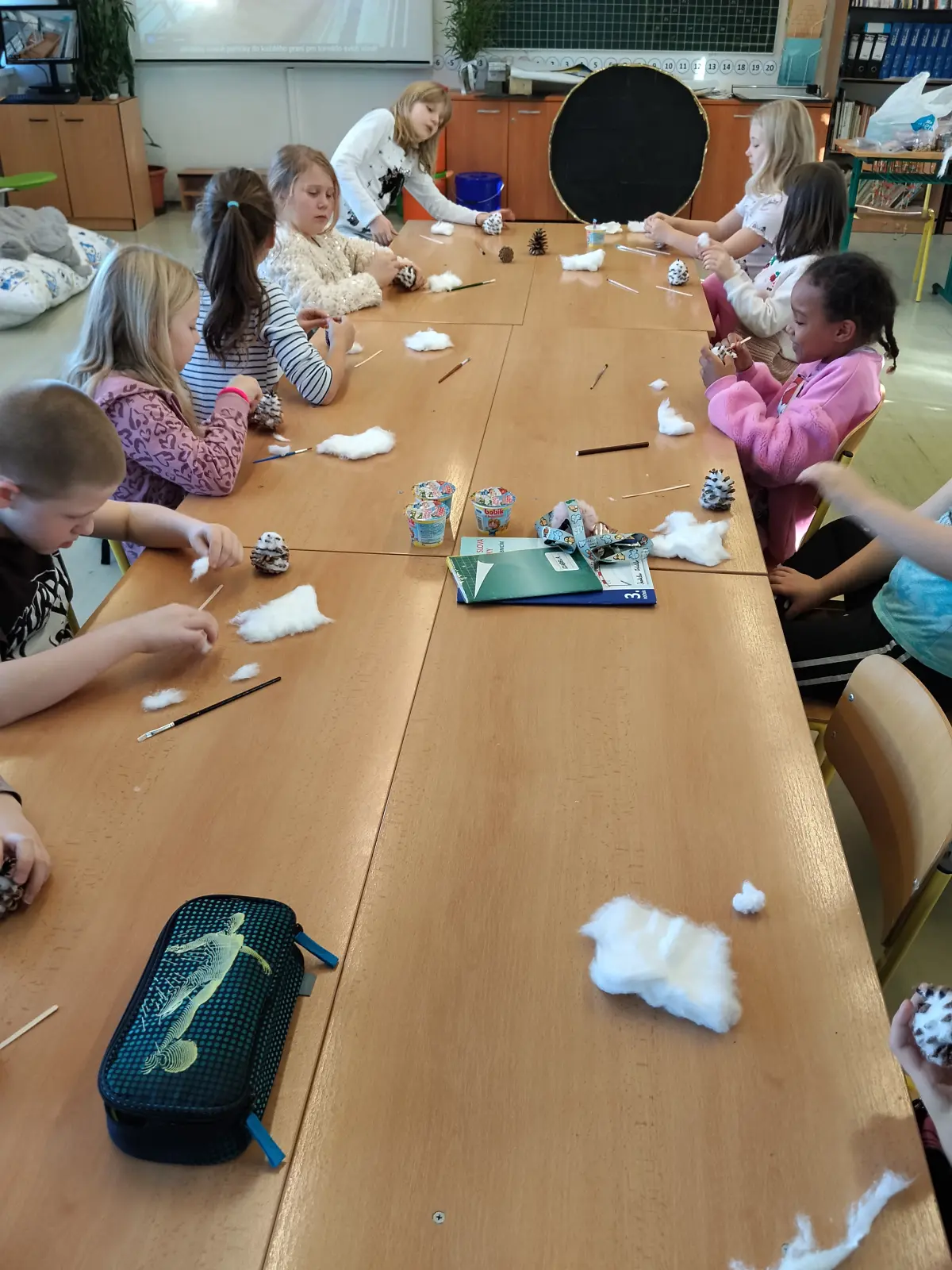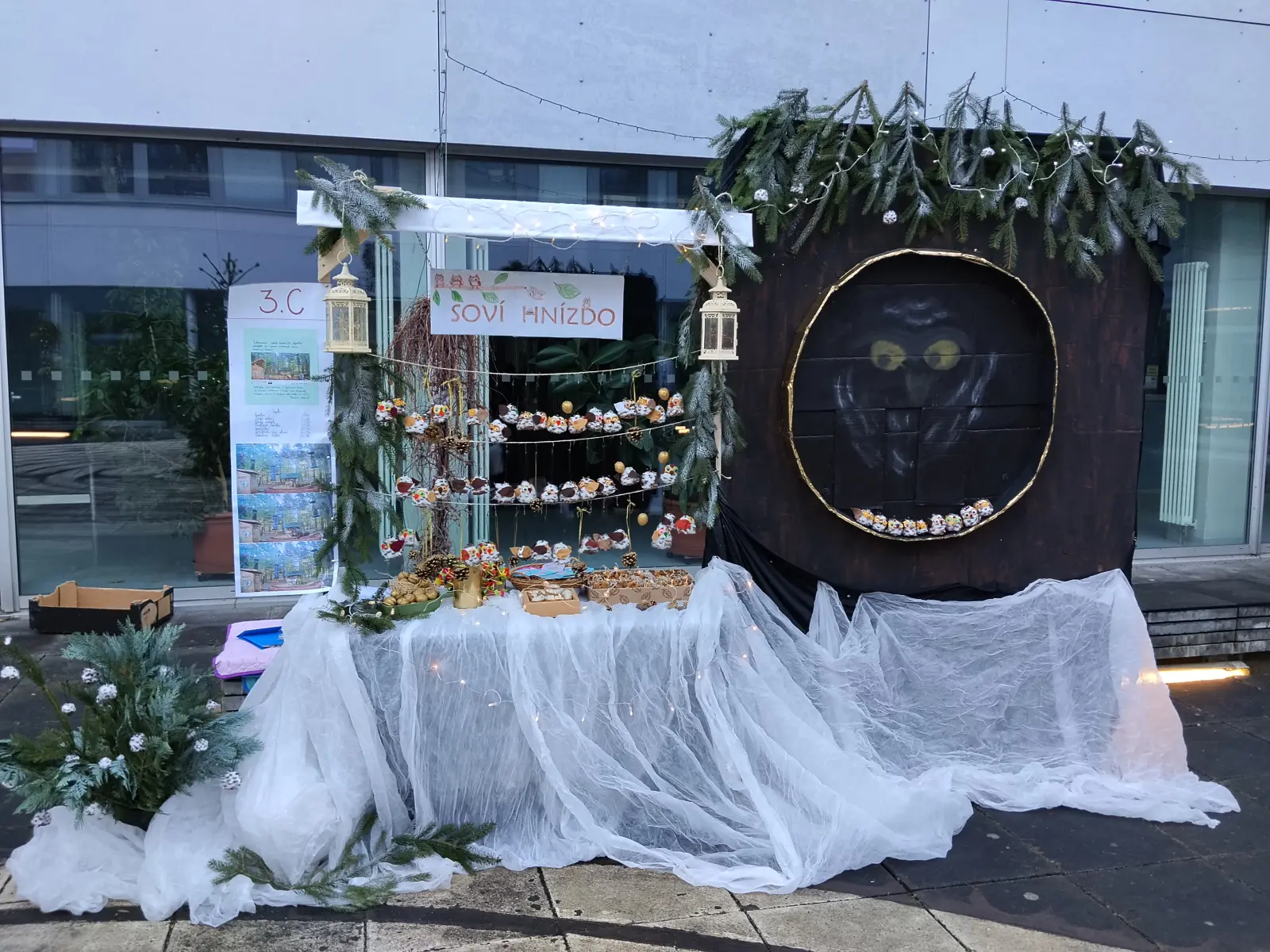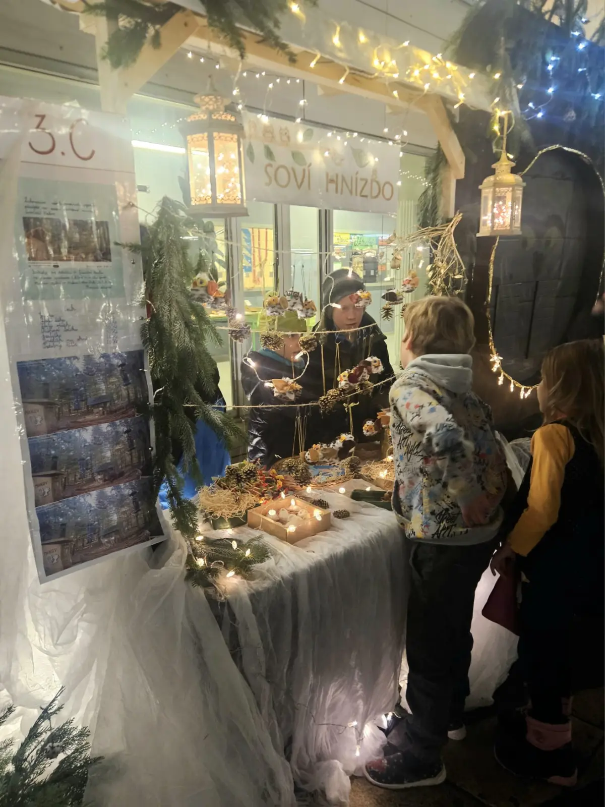 Ve středu 12. 12. 2025 se konal Vánoční jarmark, který byl vyvrcholením a zúročením naší práce. Letos jsme se rozhodli pro stánek na kouzelném náměstíčku, které pro tento účel vzniklo uprostřed školy (děkujeme panu učiteli Zachníkovi a panu školníkovi). Již od listopadu jsme vyráběli “zboží” na prodej ne proto, abychom vydělali, ale abychom z výtěžku podpořili Záchrannou stanici živočichů Makov. Rádi sledujeme jejich webkameru (krmítko), takže Makov byl jasná volba.