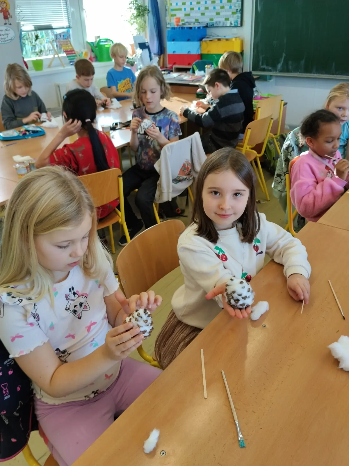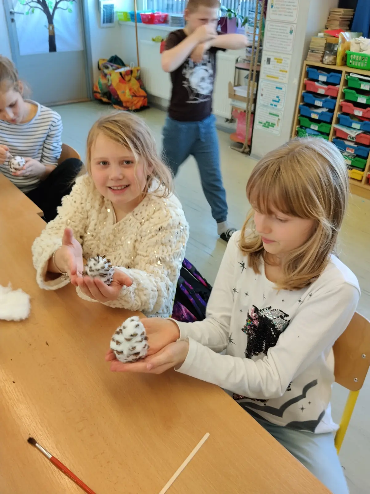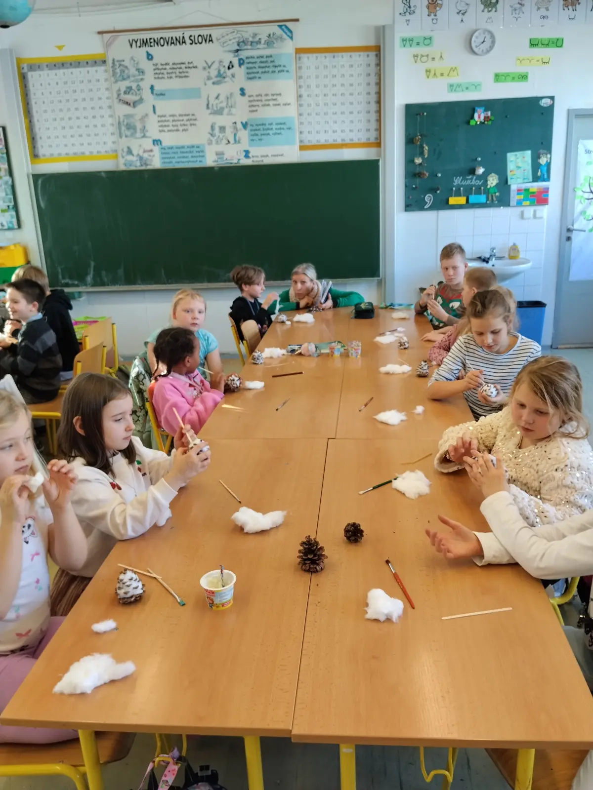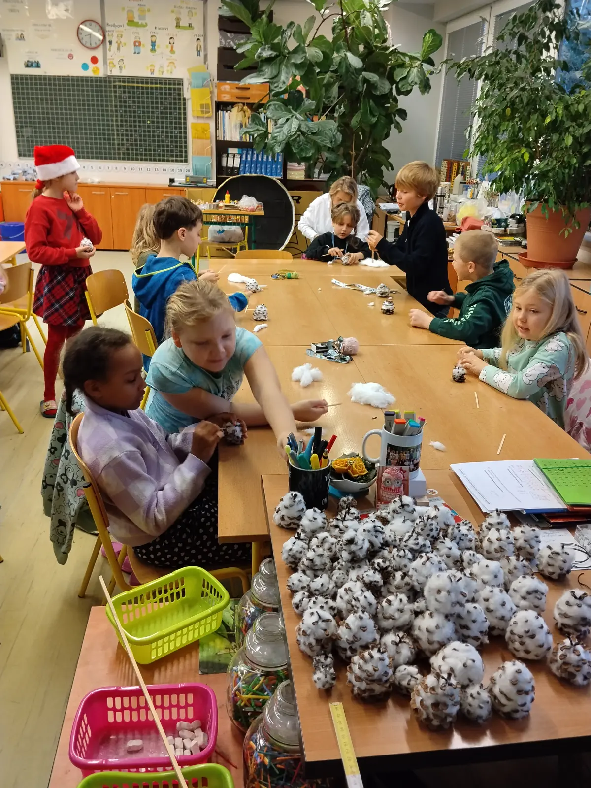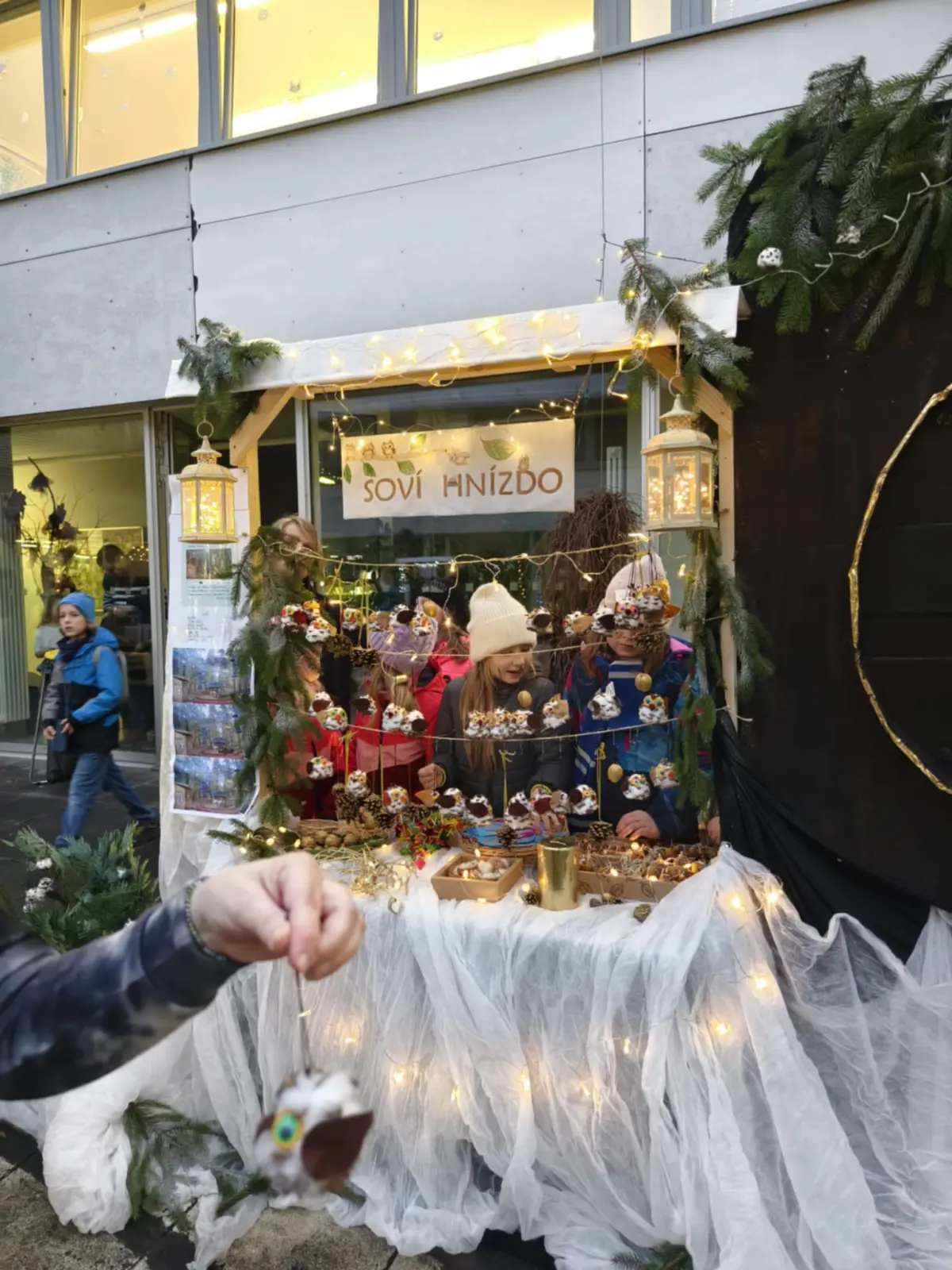 Ve středu 12. 12. 2025 se konal Vánoční jarmark, který byl vyvrcholením a zúročením naší práce. Letos jsme se rozhodli pro stánek na kouzelném náměstíčku, které pro tento účel vzniklo uprostřed školy (děkujeme panu učiteli Zachníkovi a panu školníkovi). Již od listopadu jsme vyráběli “zboží” na prodej ne proto, abychom vydělali, ale abychom z výtěžku podpořili Záchrannou stanici živočichů Makov. Rádi sledujeme jejich webkameru (krmítko), takže Makov byl jasná volba.