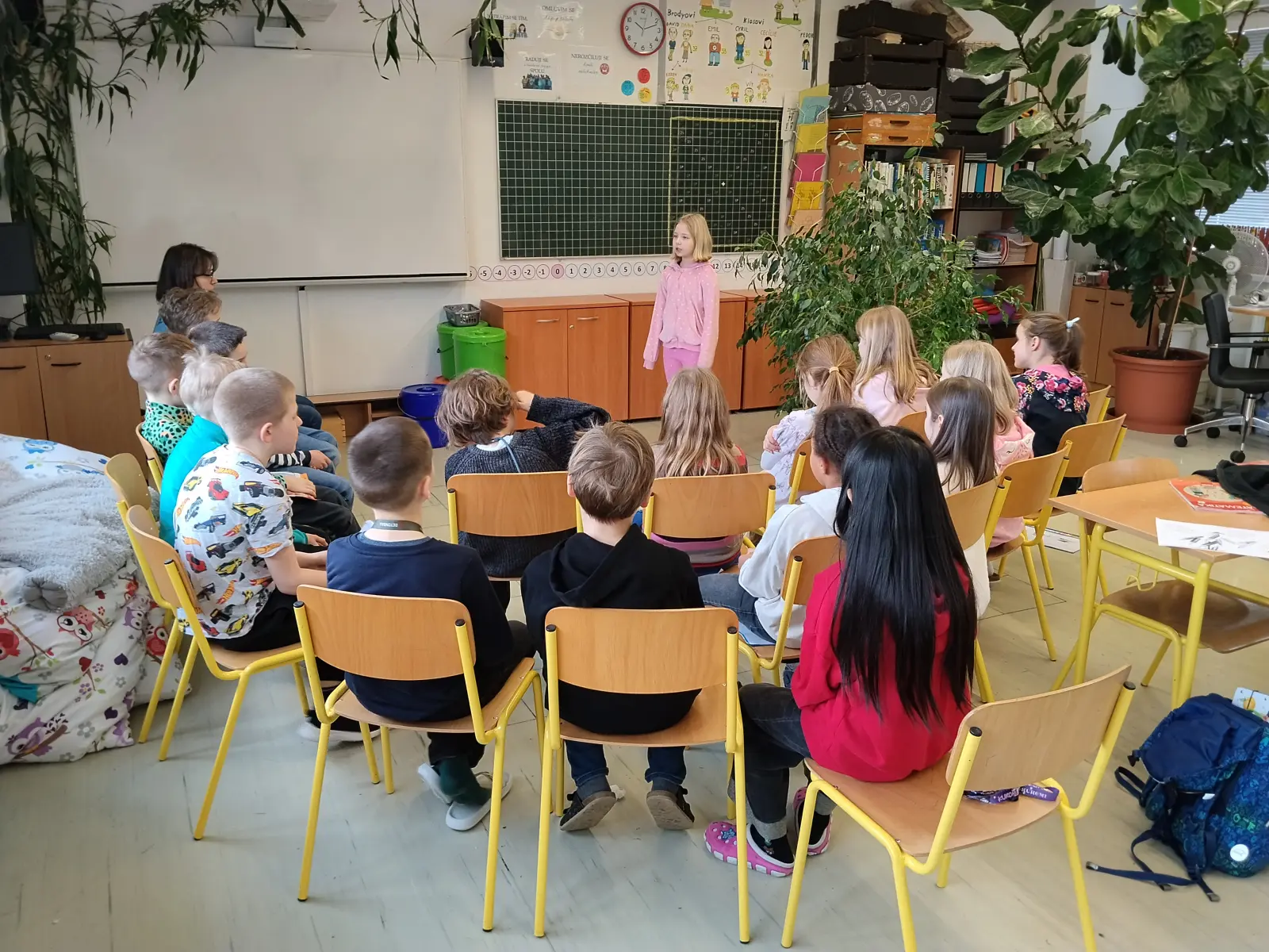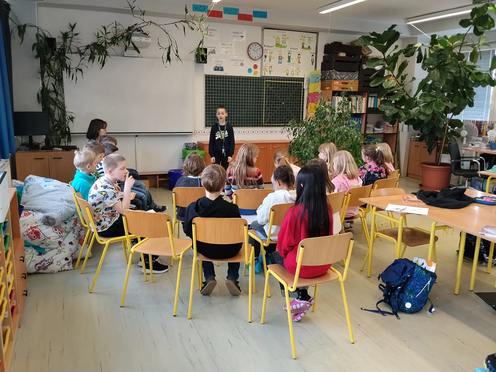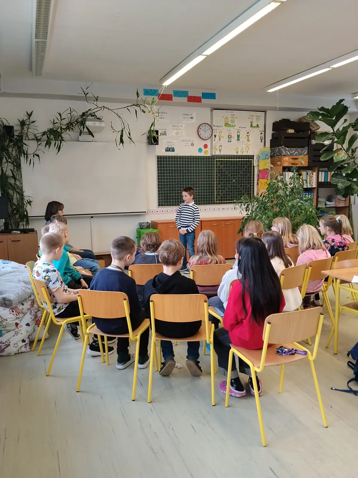 Ve čtvrtek 12. 2. 2026 jsme uspořádali třídní kolo Pražského poetického setkání. Děti zúročily čtrnáctidenní úsilí trénování paměti, pilování přednesu, hlasitosti, intonace. Vyzkoušely si, jak je někdy těžké překonat nervozitu, byť před kamarády a v bezpečném prostředí. Každý to zvládl dle svých možností a přestože do školního kola mohli postoupit jen dva zástupci, pochvalu zaslouží všichni.