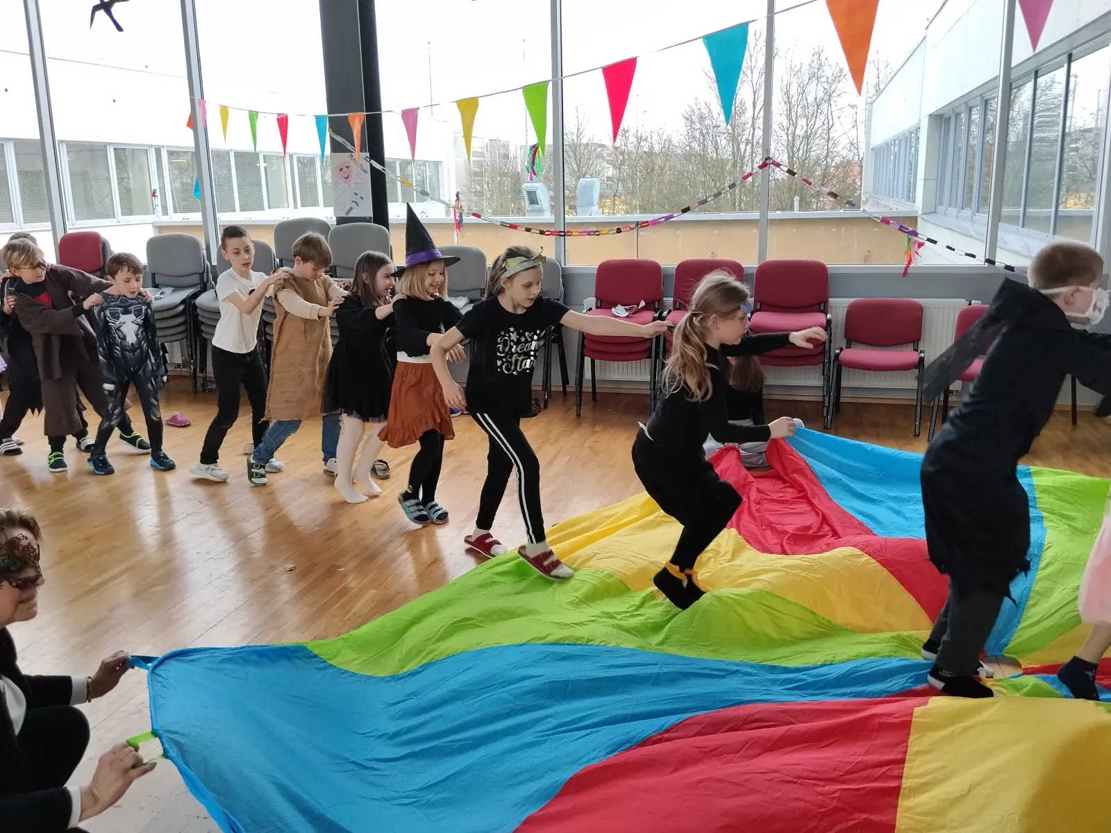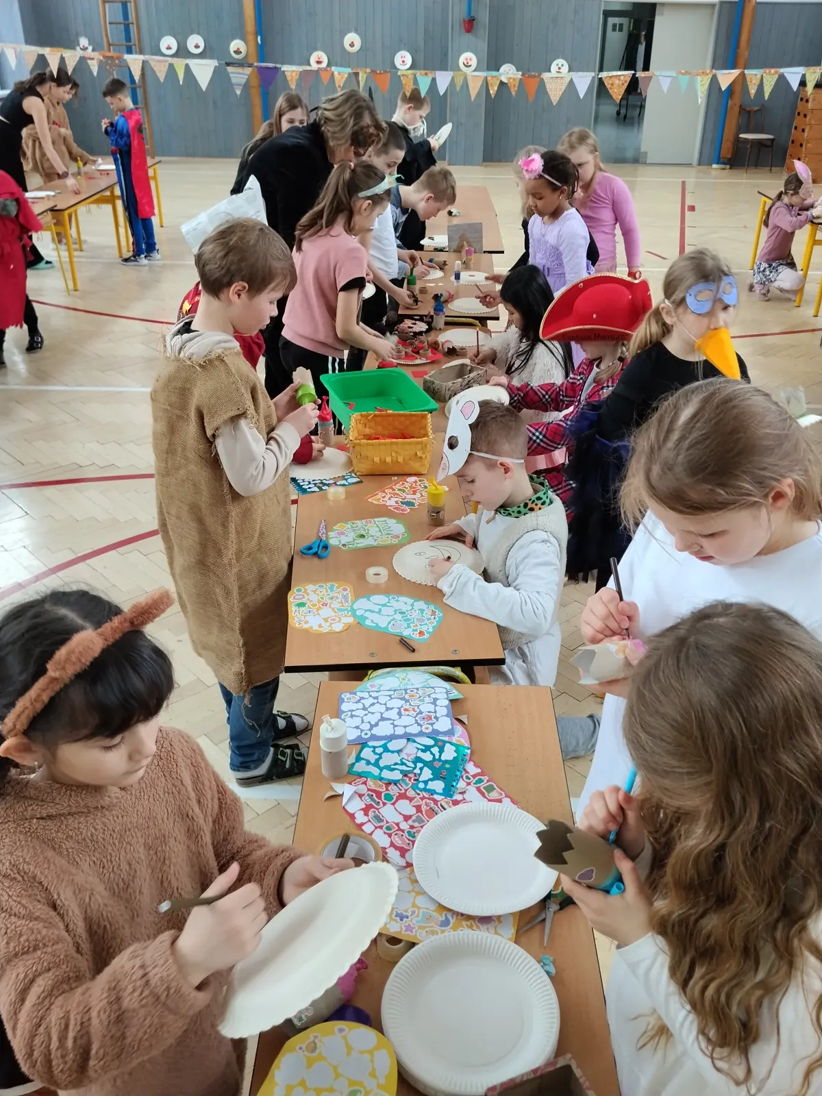 Úterý 17.2.2026 bylo ve znamení Masopustu. Hóóóódně veselého Masopustu. Všichni jsme si užili spoustu zábavy při aktivitách v tělocvičnách, vyráběli jsme, tančili, nacpali se koblihami. Děkujeme za skvělou organizaci, bylo to fajn. A masky? Úžasné!