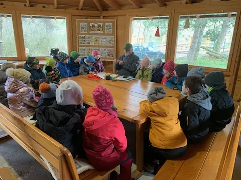 Ve čtvrtek 26. 3. 2026 jsme vyrazili spolu s 1. A na dlouho plánovanou výpravu do záchranné stanice Makov. Jak jsme již předem avizovali při prodeji našich výrobků během vánočního jarmarku, výtěžek jsme věnovali právě této záchranné stanici, jejíž webkamery rádi sledujeme. A protože jsme nechtěli jenom poslat peníze, rozhodli jsme se již v prosinci, že stanici podpoříme i naší návštěvou a zaplacením vstupného, aby děti na vlastní oči viděly, že to, co sledují na obrazovkách, není film a je skutečné.