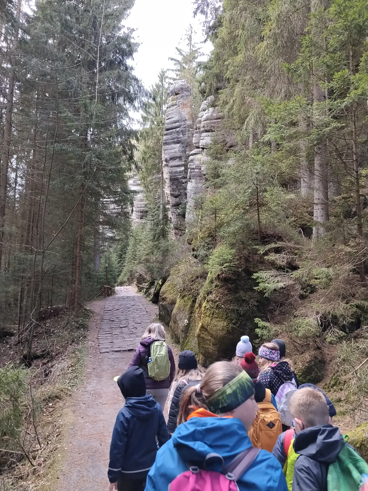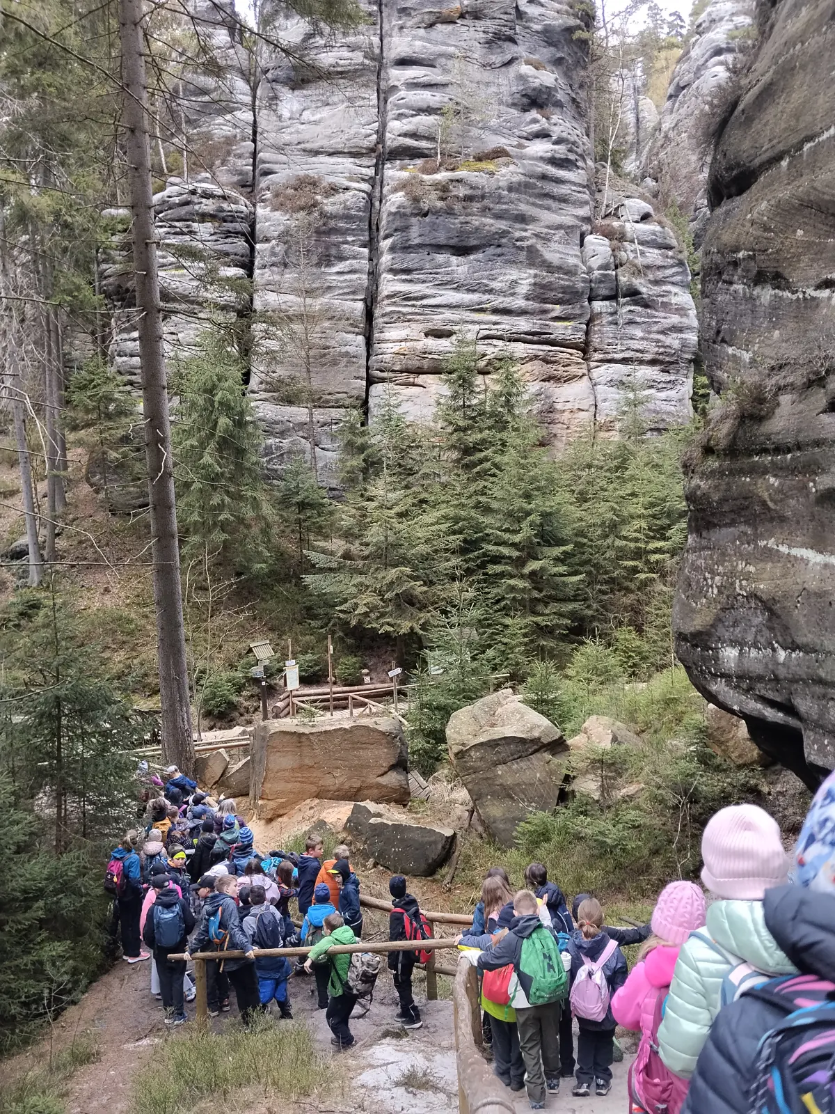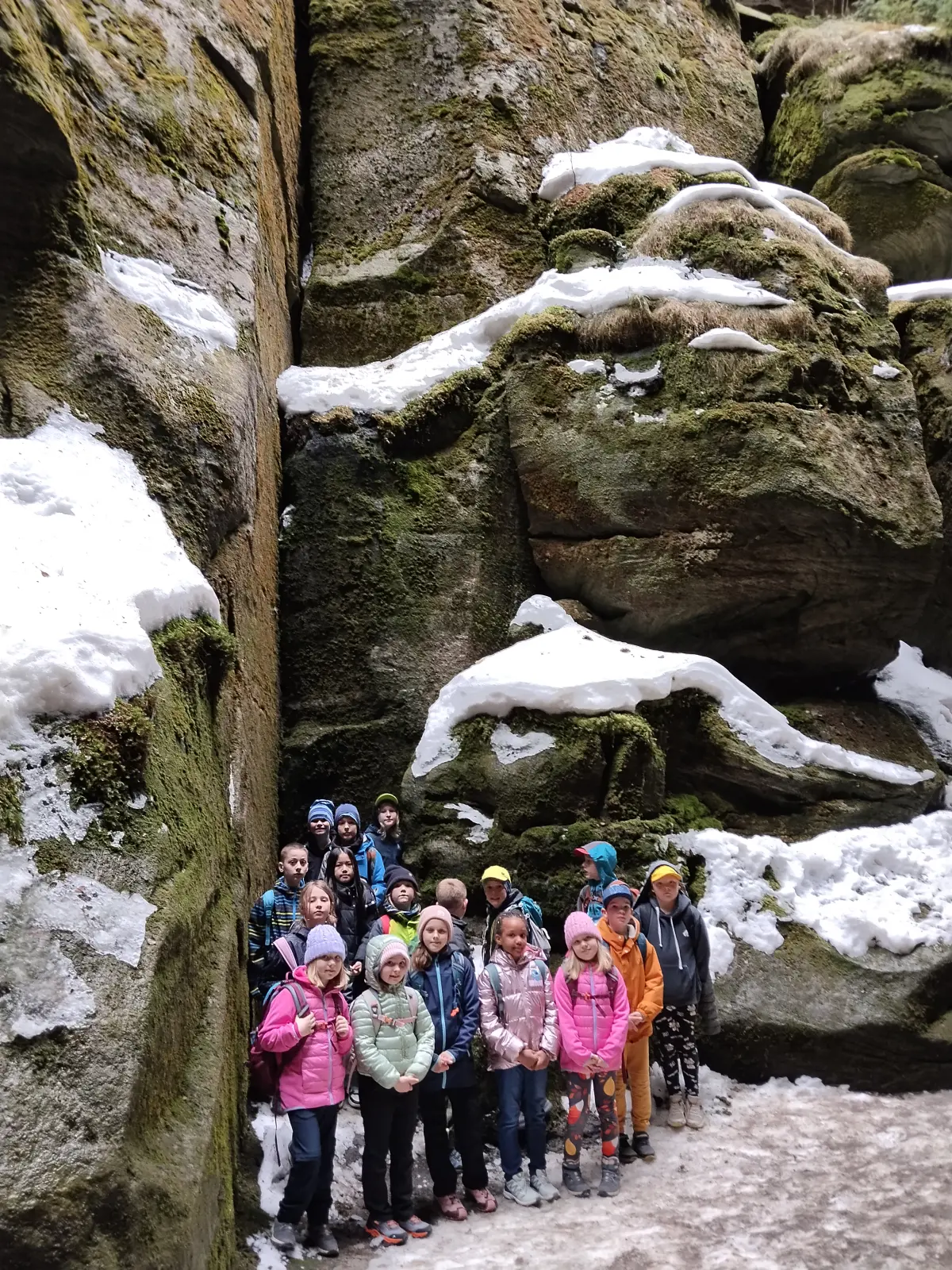 Dopoledne jsme se s neuvěřitelným nadšením učili a odpoledne vyrazili do Teplických skal. Počasí se vydařilo, nohy sice trochu bolí, ale skály byly jako vždy úchvatné. Letos jsme navíc měli po dlouhých letech štěstí a okruh, kde hnízdí sokoli, byl otevřený, takže zatímco jsme v předchozích letech mohli jenom nakouknout skrz zavřenou branku, letos jsme tuto nádhernou část Teplických skal prošli celou. Děti byly vzorně potichu, až jsme se divili. Jeden stupeň Celsia a sníh na Sibiři nás ani nepřekvapil, protože sněhu a zimy jsme si již užili včera. Vrátili jsme se přesně na večeři, pak mýt, číst, spát.