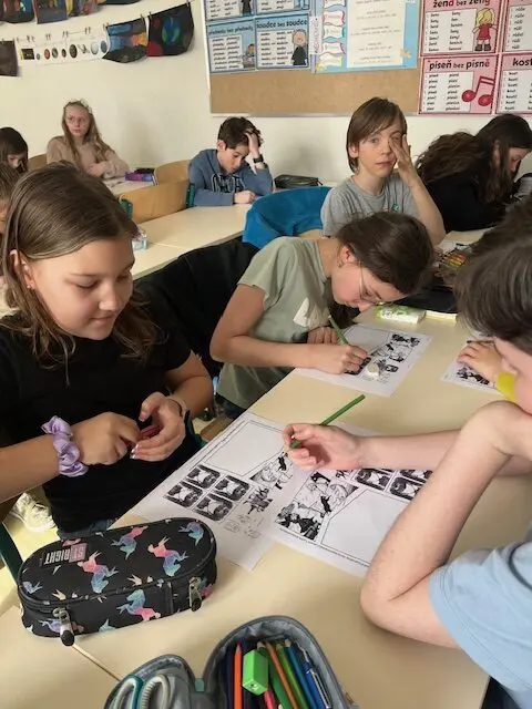 ♣ ♠ ♟ Ve spolupráci s nakladatelstvím Albatros, spisovatelkou Petrou Neomillnerovou a výtvarníkem Lubomírem Kupčíkem vznikl krátký komiksový příběh, který vychází z bestselleru Petry Neomillnerové Amélie a tma. … a my máme za sebou interaktivní vzdělávací program Amélie ve světě komiksu, který nám přiblížil historii, tvorbu a stylizaci komiksů. Seznámili jsme se s procesem vzniku od scénáře po kresbu, nahlédli jsme do zákulisí skic a návrhů a vyzkoušeli si roli autorů. Programem nás prováděla Veronika Krištofová, která dokázala, že výuka může být dobrodružstvím, hrou i skutečným učením 🎨🦇🙎