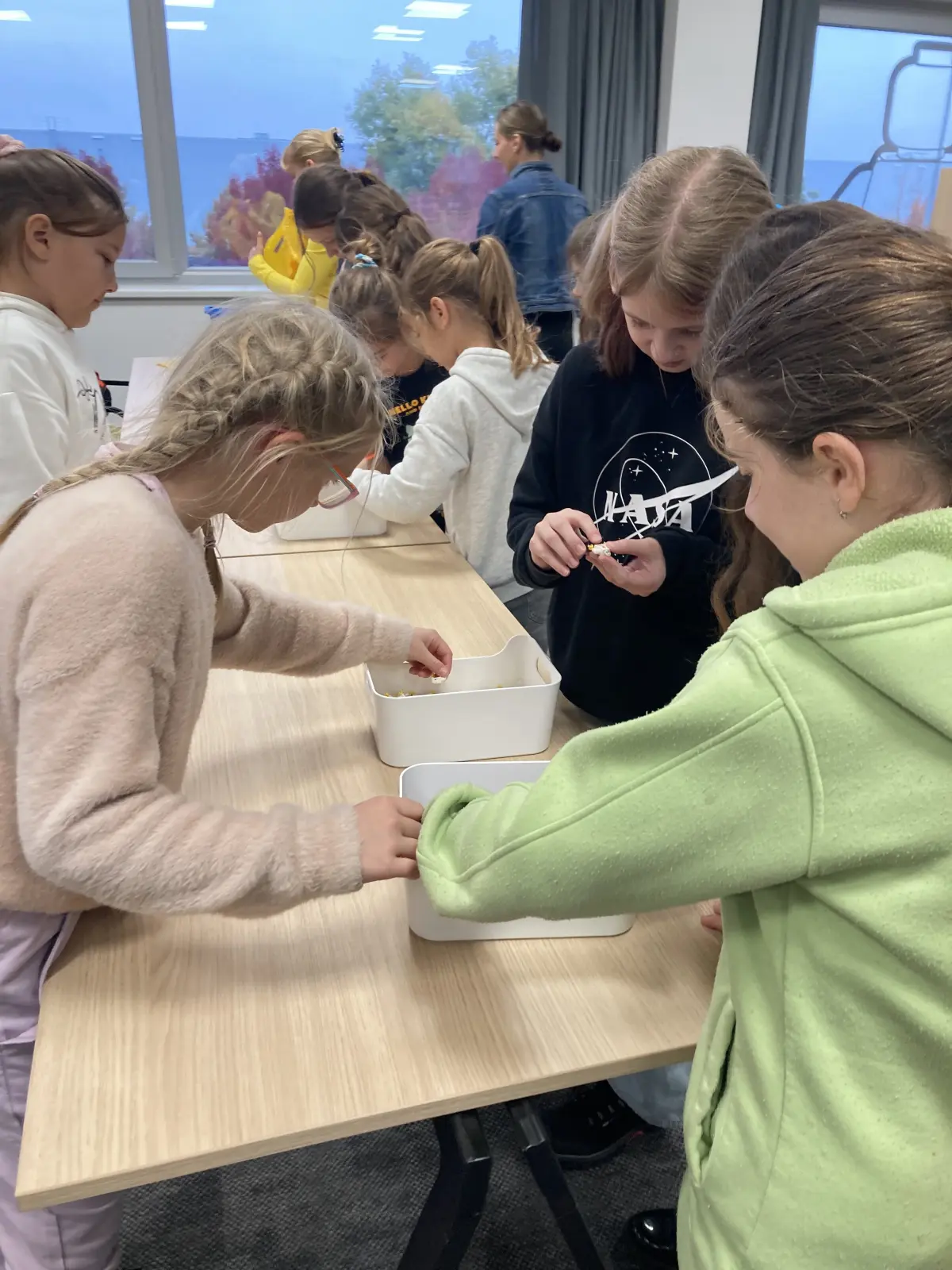 V rámci hodiny pracovních činností jsme se učili háčkovat pod vedením Karolínky, která se rozhodla podělit o své umění a připravila pro nás workshop. Od prvních řetízkových ok až po krátké sloupky a třída byla plná soustředění a nadšení. Bylo inspirativní sledovat, jakou radost měli všichni z prvních výsledků 🙂 💓💯