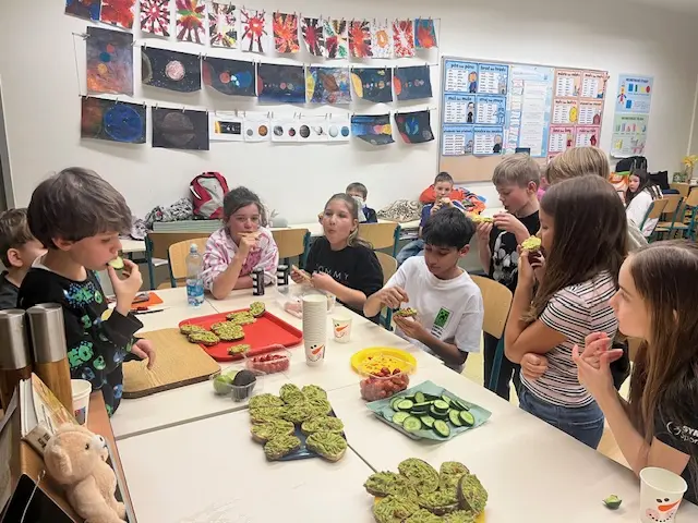 Po kulturním programu se děti proměnily v šéfkuchaře a pod taktovkou naší Julky se pustily do přípravy chutné večeře – chlebíčky s guacamole 🥑, které zmizely dřív, než byste řekli Andersen!🤤