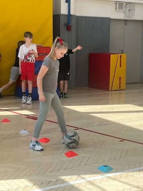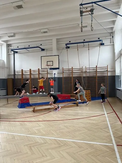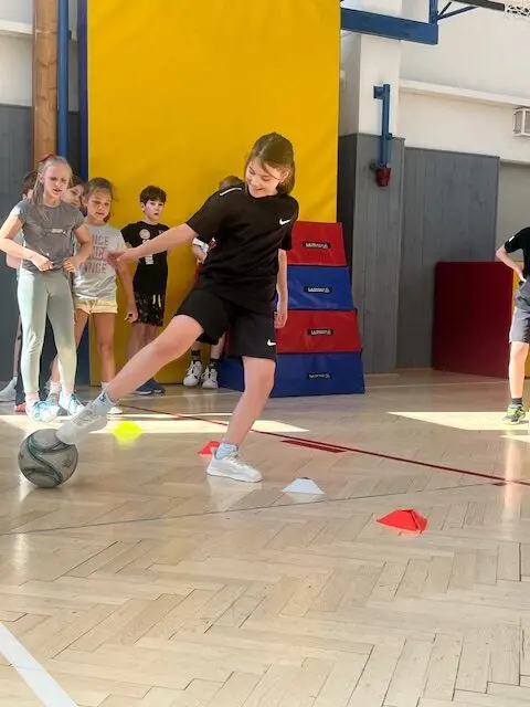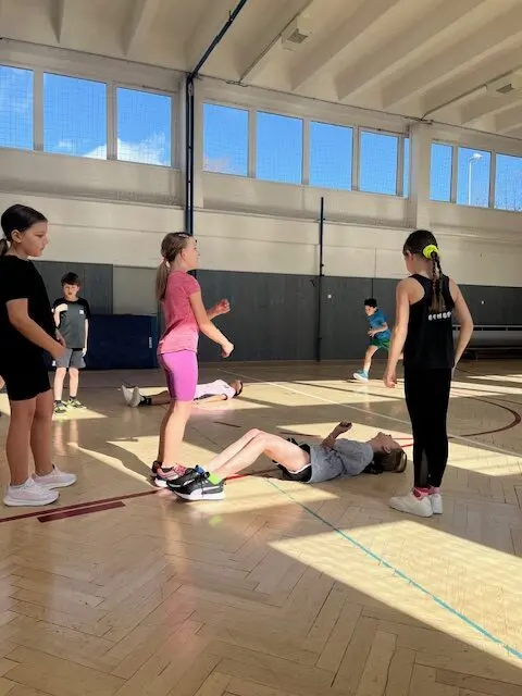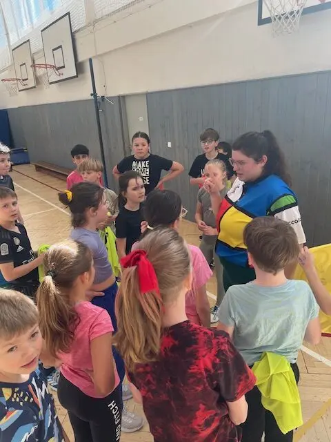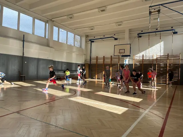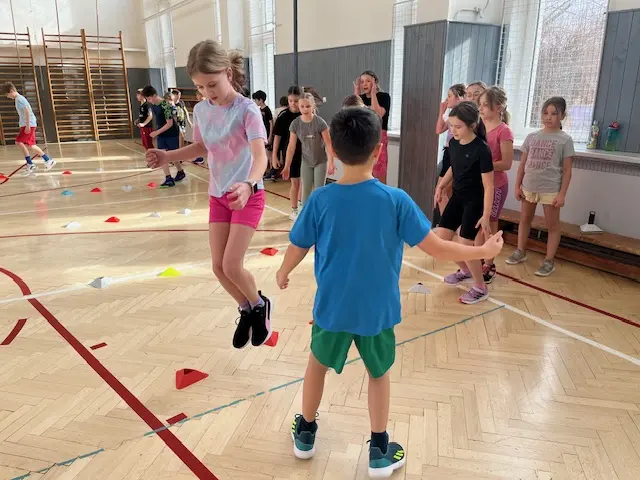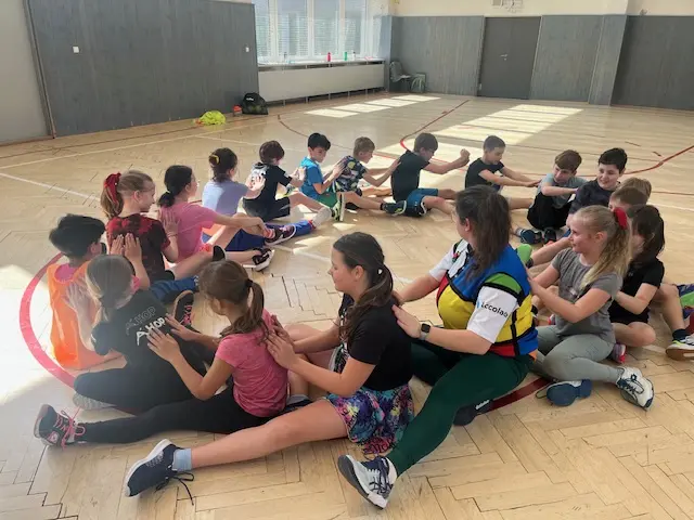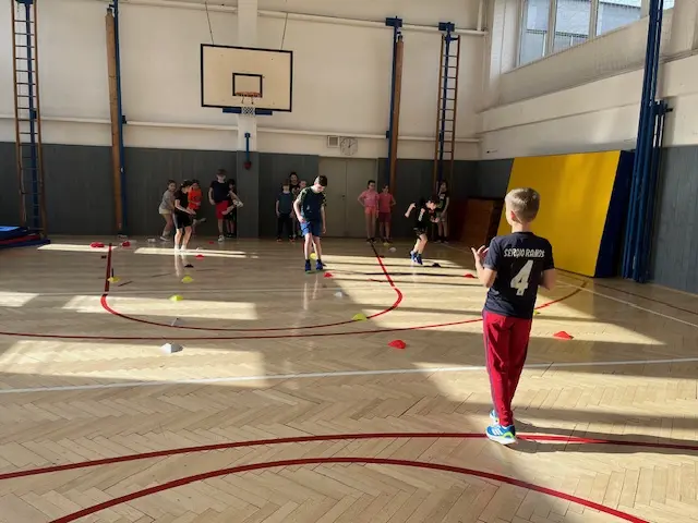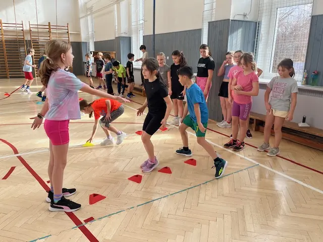 V rámci čtvrtečních hodin tělocviku si žáci mohou vyzkoušet roli učitele/trenéra od úvodní rozcvičky až po závěrečné protažení. Cílem je nejen vyzkoušet si, jaké to je naplánovat hodinu a plán uvést do praxe (což dle jejich slov “není vůbec žádná hračka” 😀), ale hlavně rozvíjet tzv. soft-skills: komunikaci, organizaci a empatii. Myslím, že se to dětem velmi daří 👍