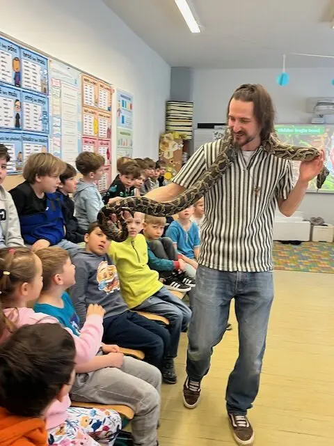 🐦🦎Víte, jak zvířata inspirovala vojenské maskáče? My ano. Díky přednášce BioAdventure 🐍Maskování ve světě zvířat 🐸 jsme se dozvěděli i to, co všechno dovedou zvířata napodobit a jak dokážou k zamaskování využít i okolní objekty a že se při tom dá i spolupracovat? Bylo fascinující odhalovat, jak se živočichové skrývají před predátory či kořistí pomocí krycího zbarvení, somatolýzy (kamufláže) a měnění barev. A vidět naživo gekona létavého, krajtu tmavou, chameleona jemenského a další tvory, byl neskutečný zážitek! Těšíme se příští rok na další přednášku. 🦑🦗