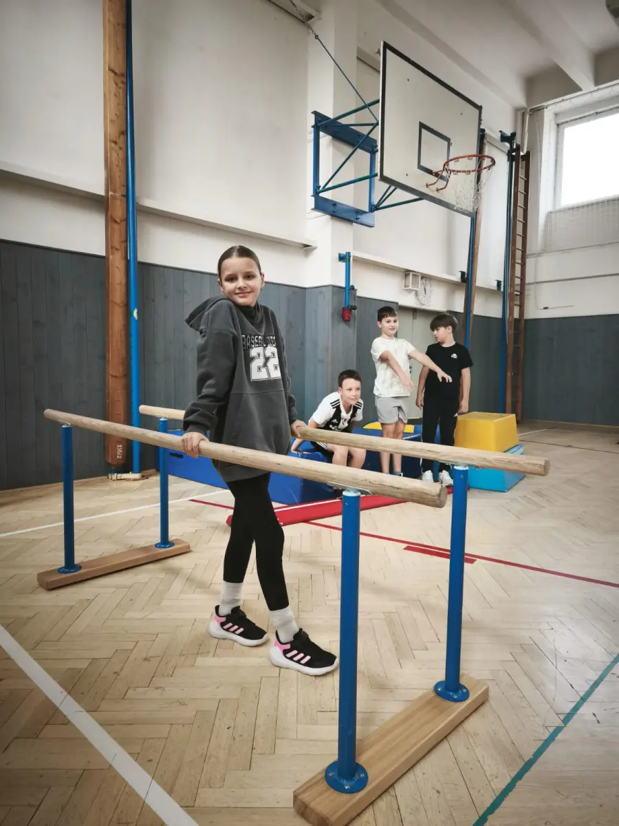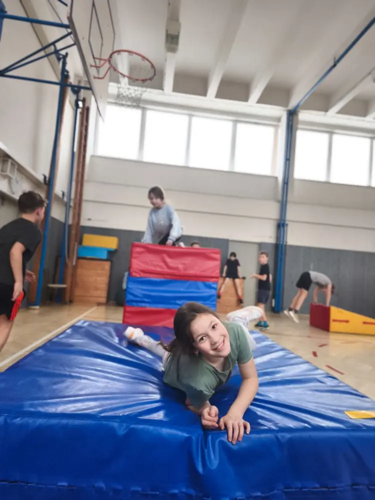 Jednu hodinu tělocviku týdně cvičíme s opravdovým trenérem nějakého sportu v rámci projektu Trenéři do škol. Je fajn, že se můžeme blíže seznámit i se sporty, které nás třeba vůbec nezajímají a možná na nich něco je…….. Už jsme si vyzkoušeli rugby, akrobacii, latinskoamerické tance a florbal.