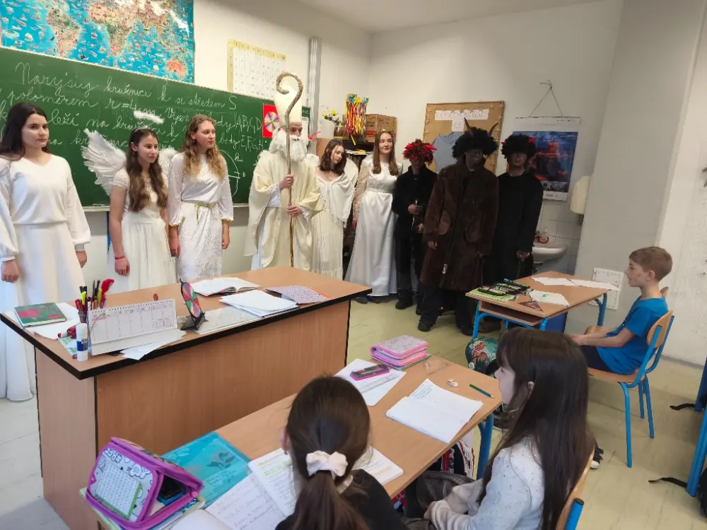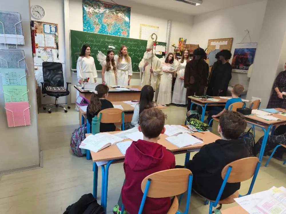Do naší třídy zavítal Mikuláš spolu s čertem a andělem. Děti byly nadšené a s radostí si připravily písničku „Mikuláši“, za kterou byl každý odměněn malou pozorností. Atmosféra byla veselá a plná očekávání.