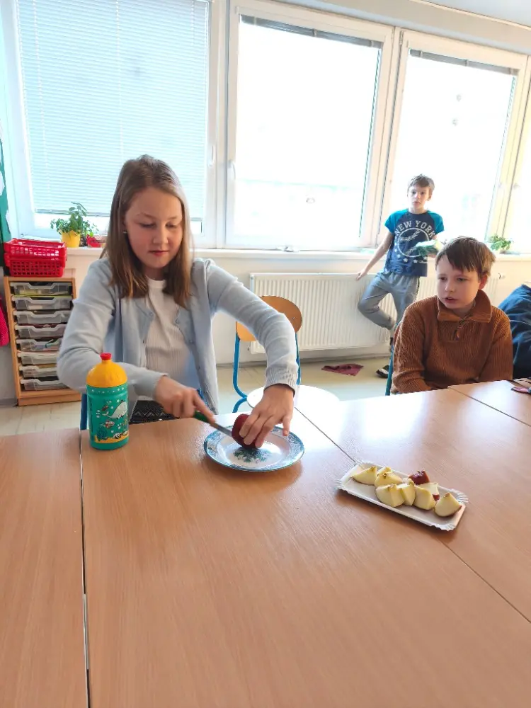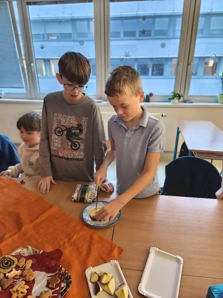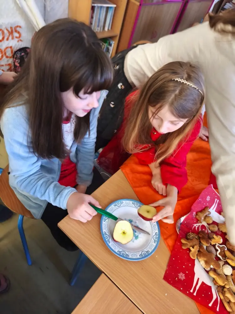 Při vánočním rozjímání jsme si vytvořili klidnou a pohodovou atmosféru. Rozkrajovali jsme jablíčka a společně si užívali chvilky vánoční pohody.