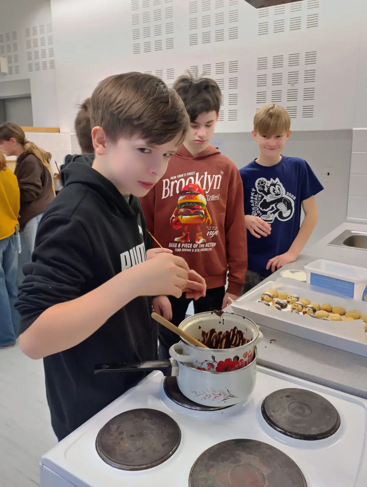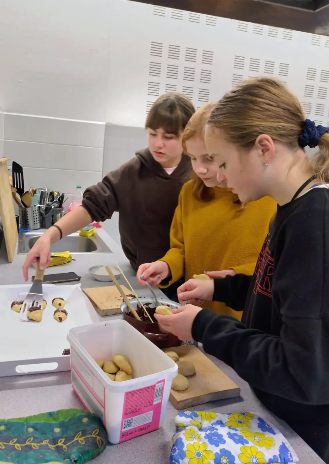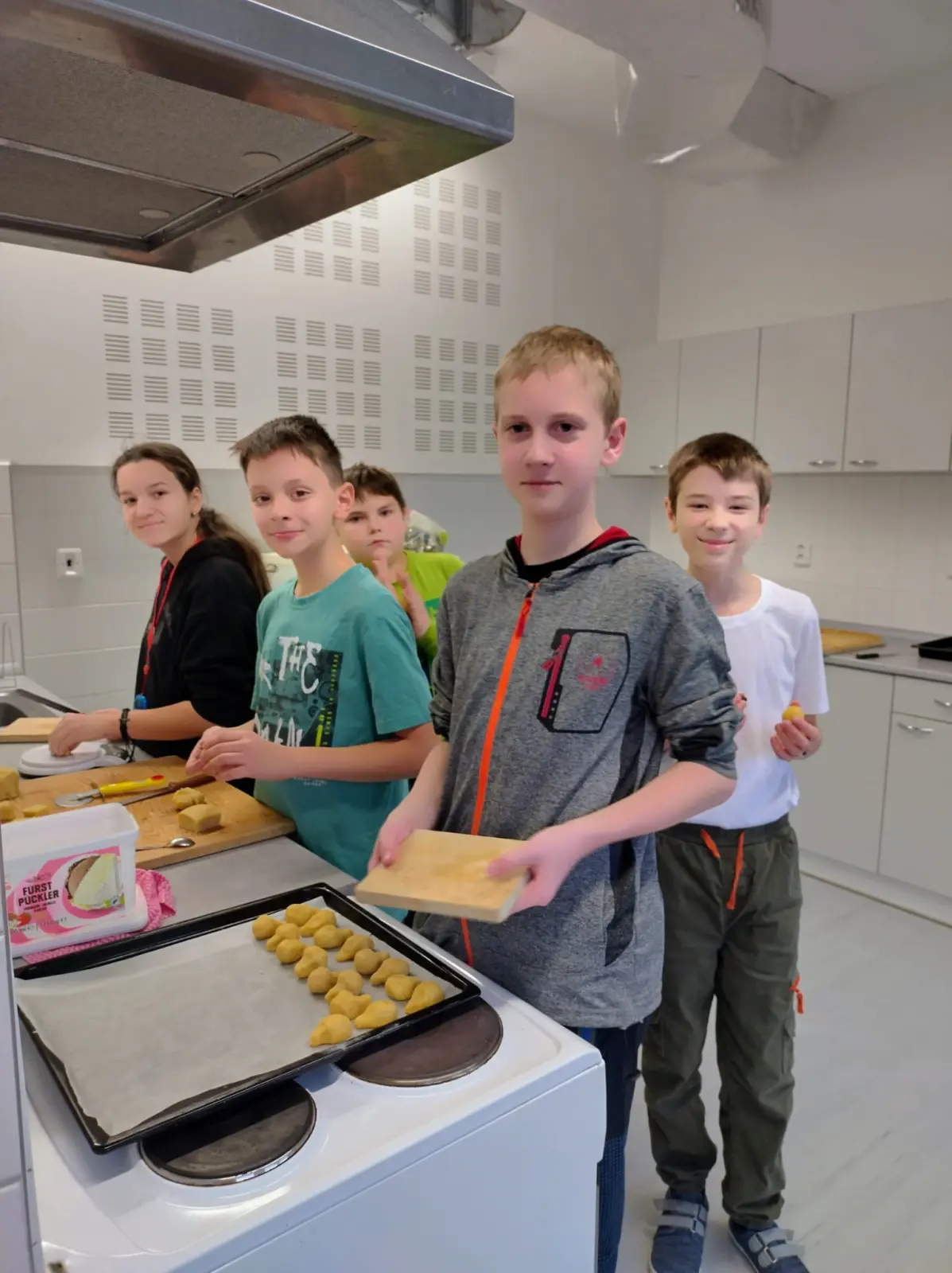 V rámci příprav na vánoční jarmark jsme se s dětmi pustili do pečení v naší školní kuchyňce. Pracovalo se s chutí a panovala příjemná atmosféra. Děti se do příprav zapojily s nadšením, krásně spolupracovaly, bavilo je to a výsledek rozhodně stál za to.