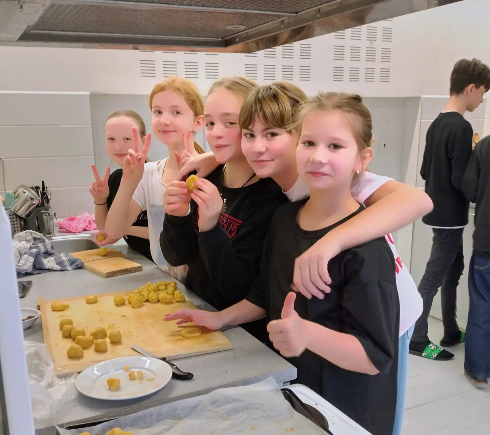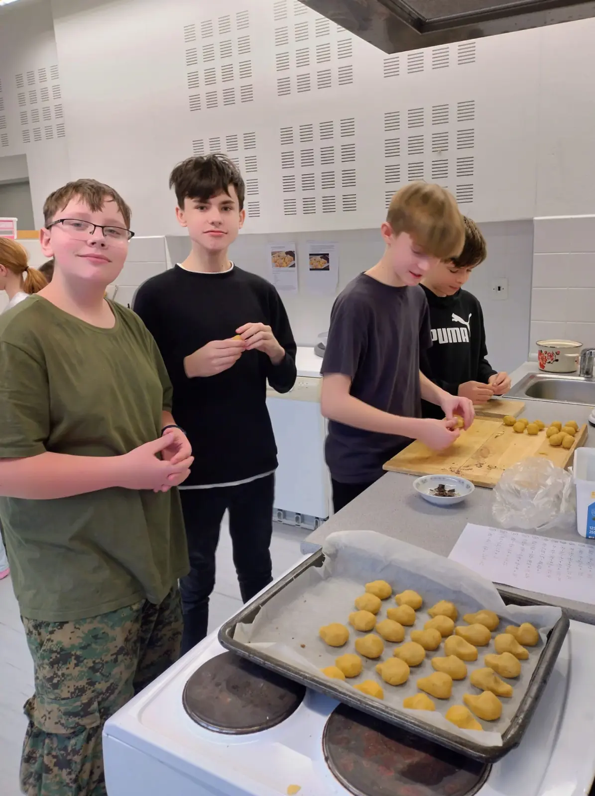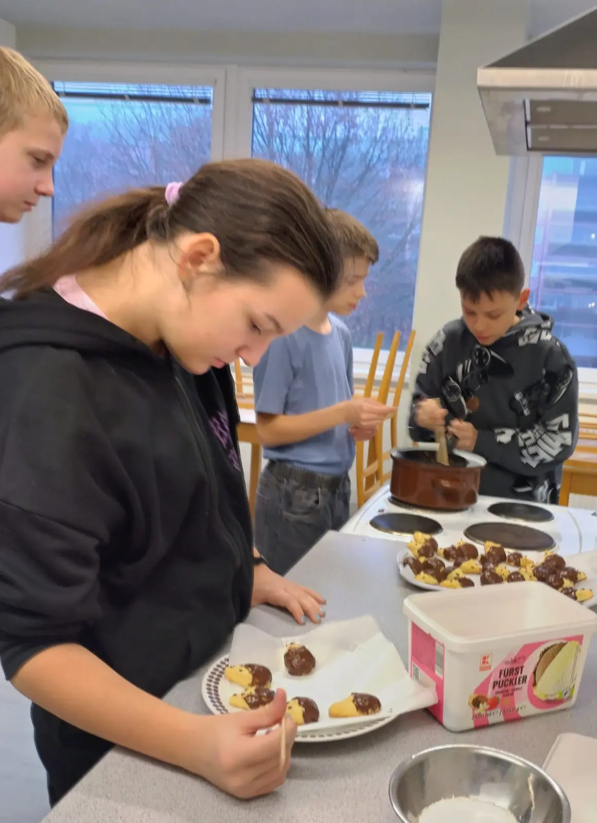 V rámci příprav na vánoční jarmark jsme se s dětmi pustili do pečení v naší školní kuchyňce. Pracovalo se s chutí a panovala příjemná atmosféra. Děti se do příprav zapojily s nadšením, krásně spolupracovaly, bavilo je to a výsledek rozhodně stál za to.