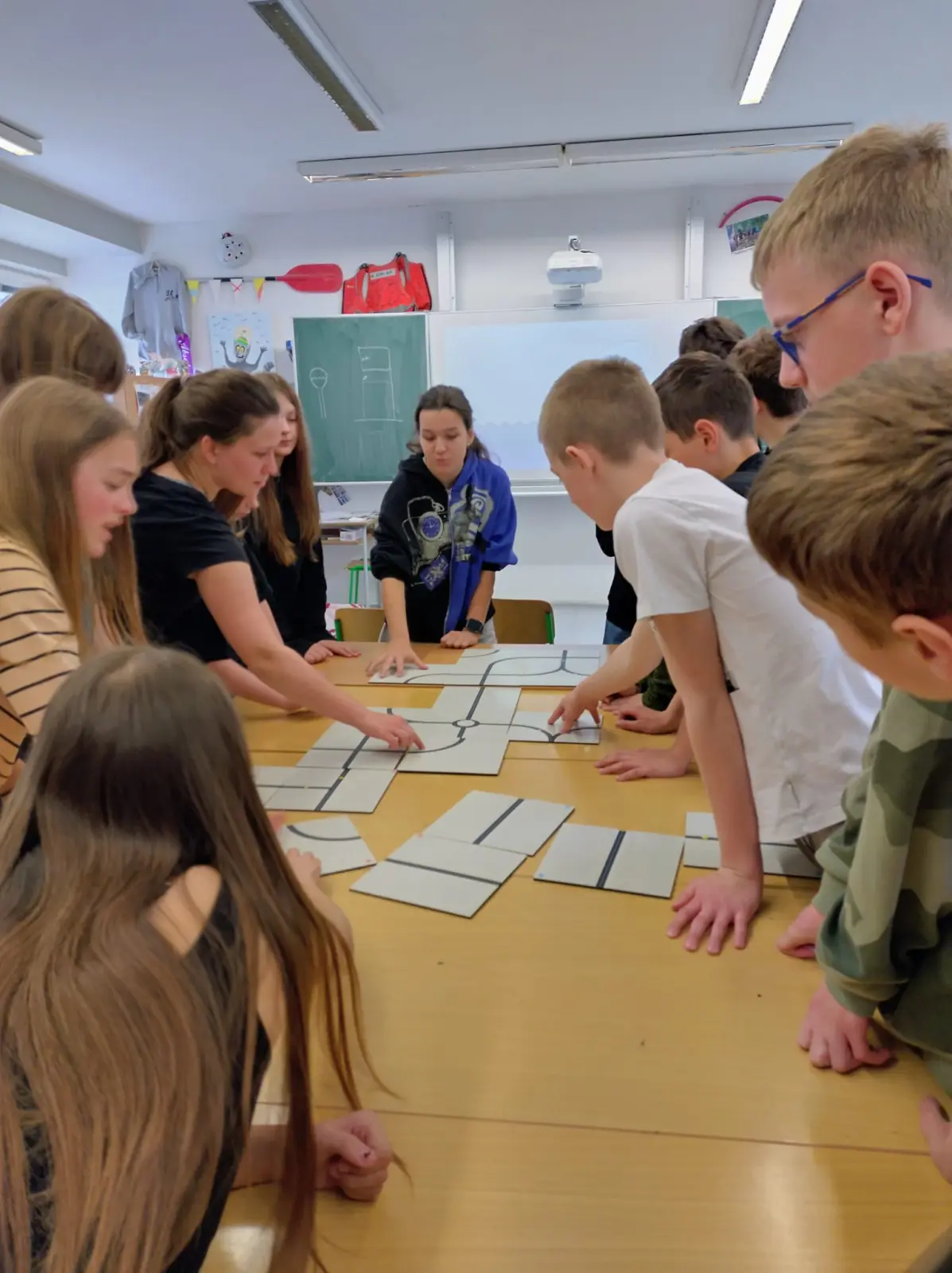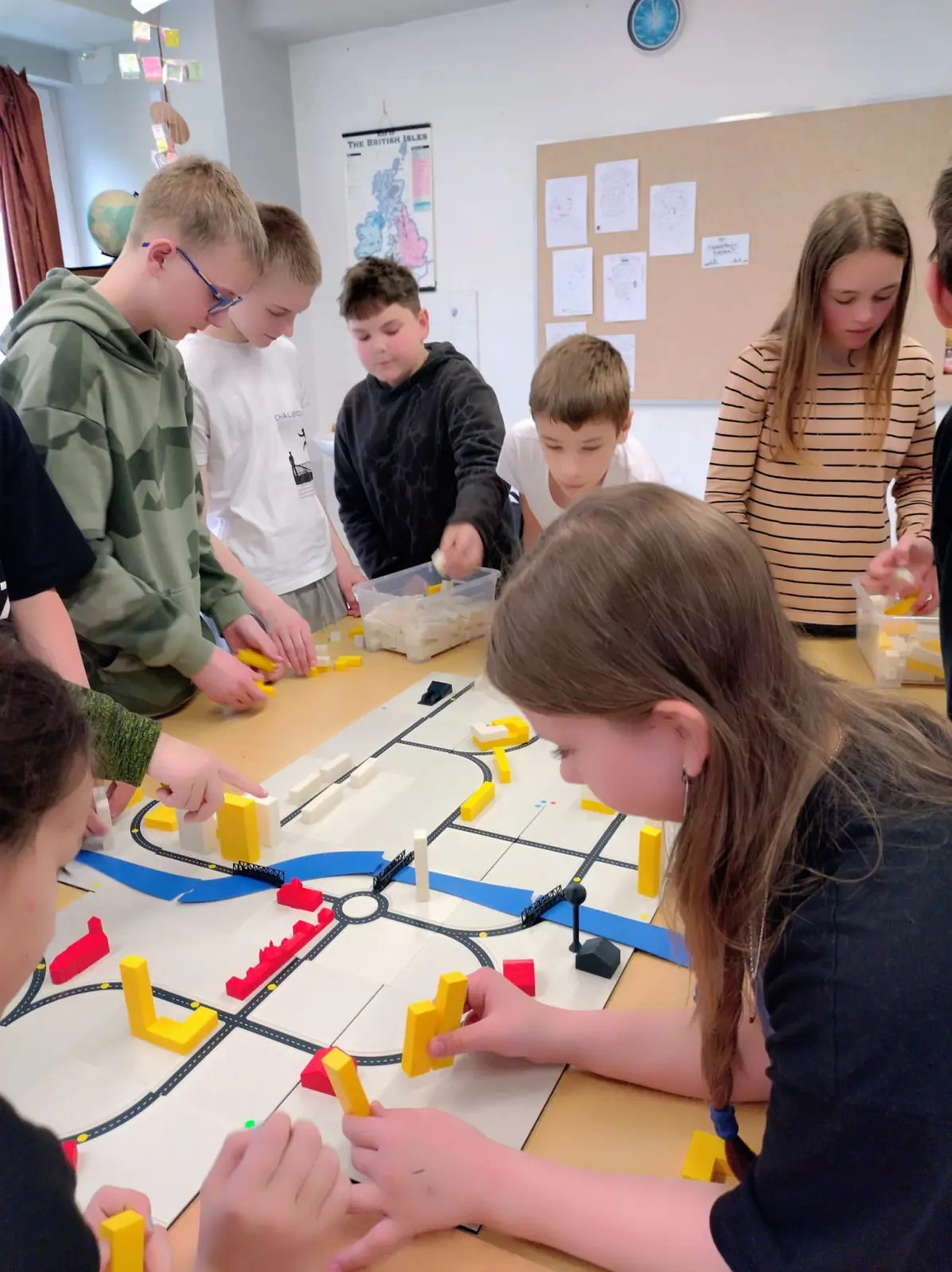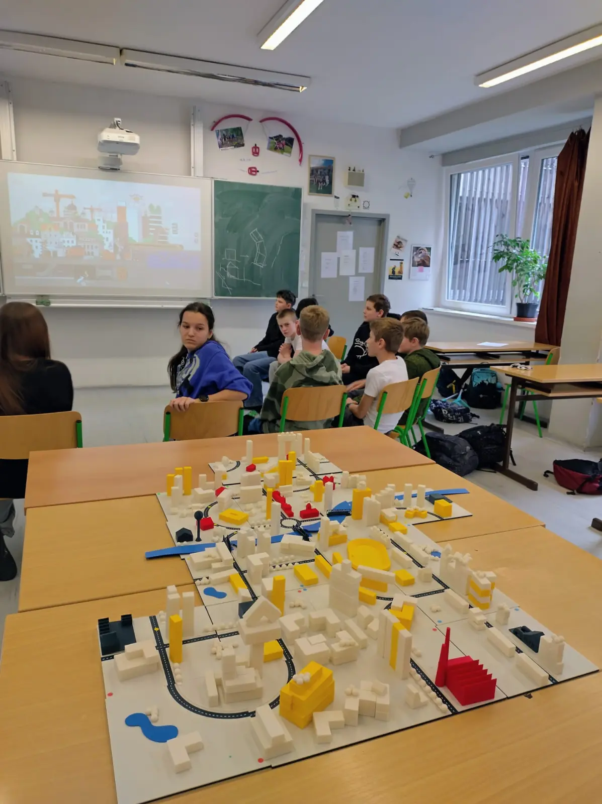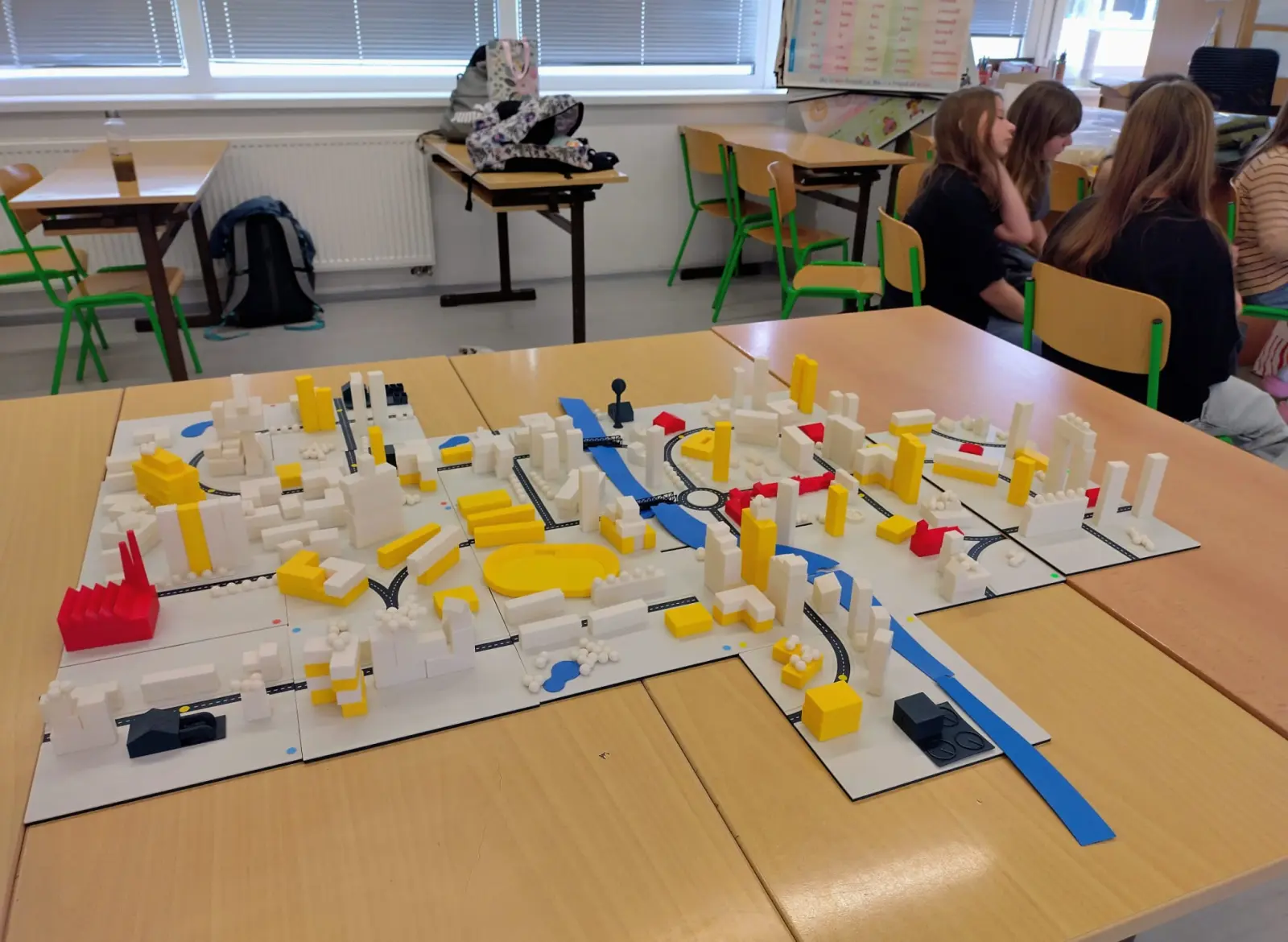 Součástí programu byla i praktická část, ve které si žáci vyzkoušeli navrhnout a vybudovat vlastní model města v souladu s reálnými urbanistickými pravidly a podmínkami. Pracovali s kostičkami a podložkami znázorňujícími uliční síť, přičemž museli zohlednit rozmístění inženýrských sítí (např. vody a elektřiny). Na základě těchto podmínek pak plánovali umístění jednotlivých staveb.