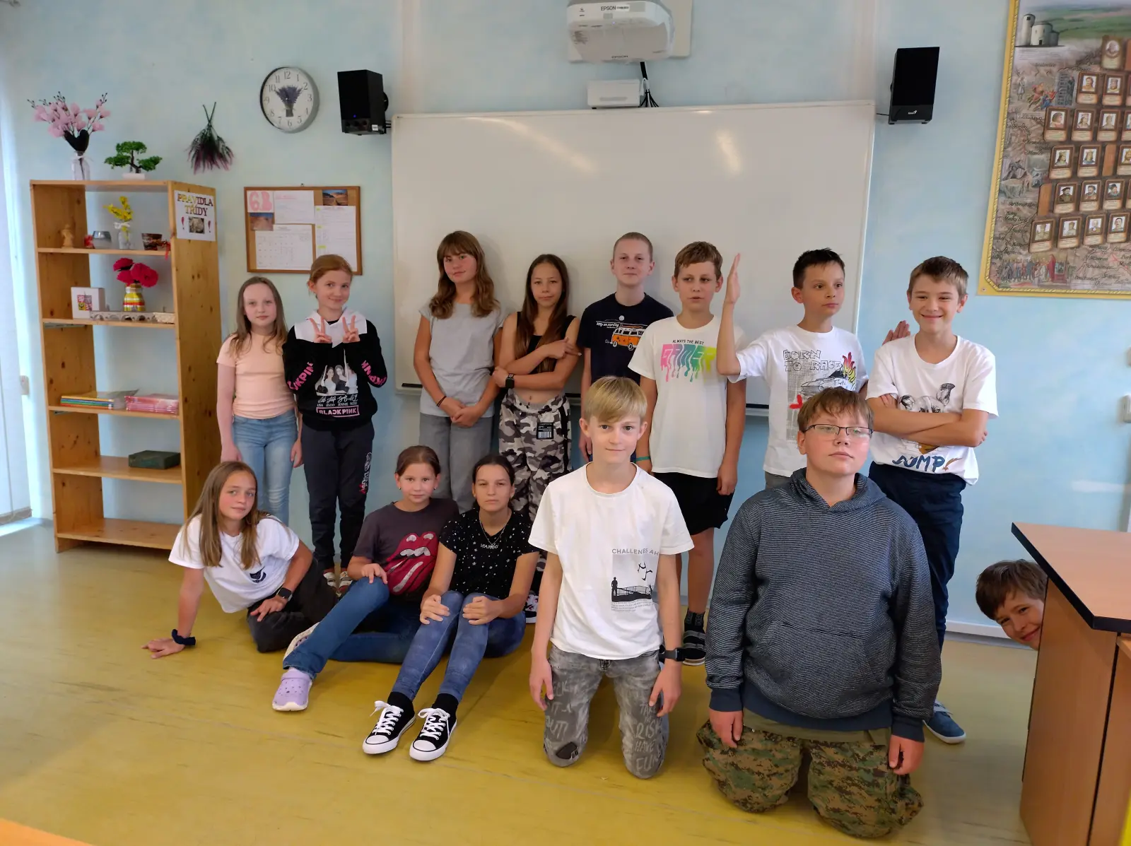 Učebna 6. B se nachází v prvním patře za šatnou druhého stupně.