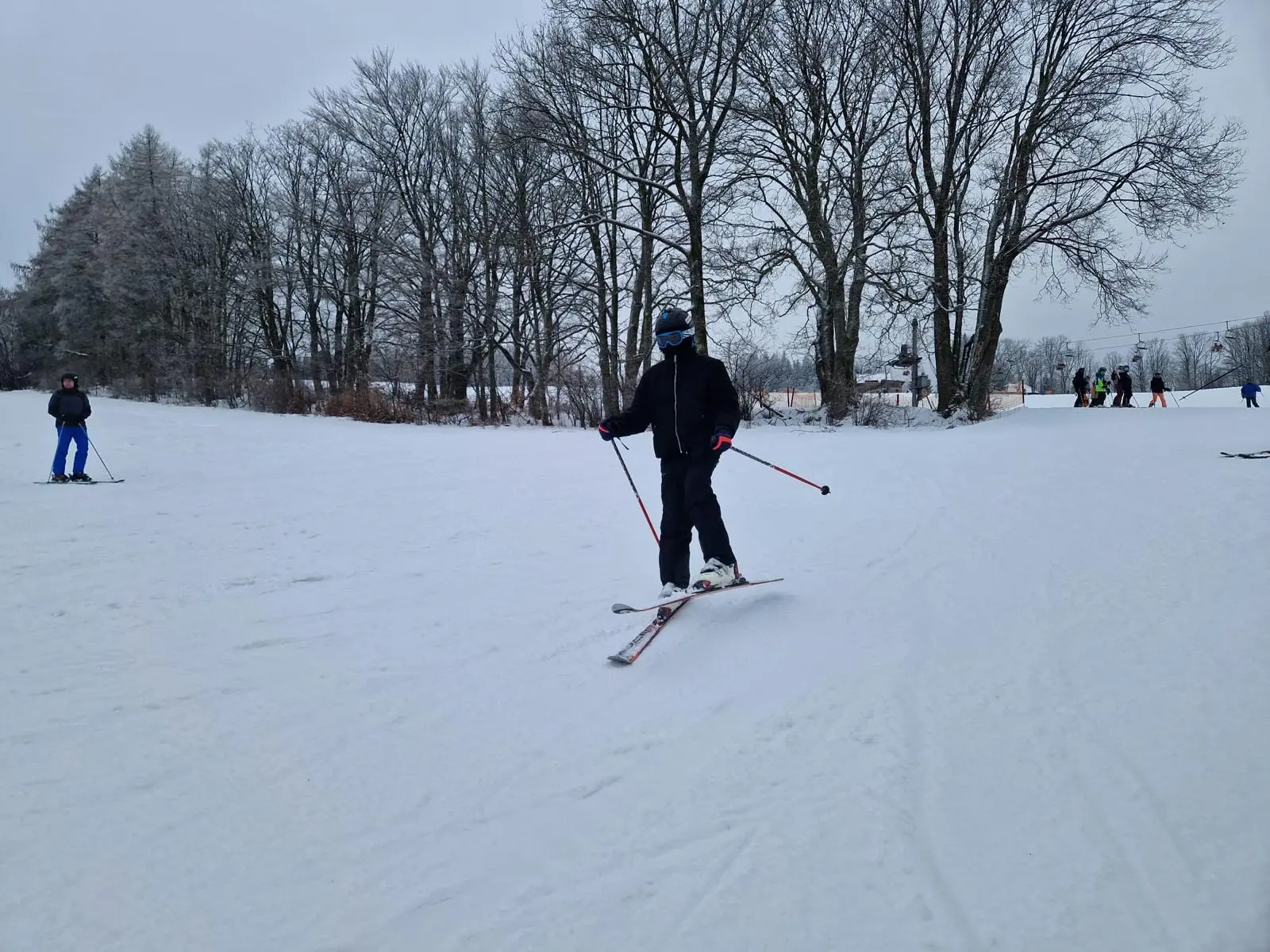 Na jednodenní pololetní prázniny bezprostředně navázal již dlouho očekávaný lyžařský kurz. Nedlouho před odjezdem se však bohužel zranili dva žáci ze třídy, ale uvolnilo se tak místo, aby mohli jiní dva, kteří o to nakonec stáli, jet. :-))) Pro některé to byly jejich první okamžiky na lyžích a jistě budou na celou akci ještě dlouho vzpopmínat. Zatím se jako legendární jeví video a příběh Martina B., který si zkusil skočit ze skokánku a když mu to tak pěkně vyšlo, chtěl se při tomtéž nechat natočit. Druhý pokus byl dokonce ještě divácky zajímavější, neboť zde umělecky ztvárnil žuchnutí a pád. Naštěstí se vše obešlo bez zranění:-).