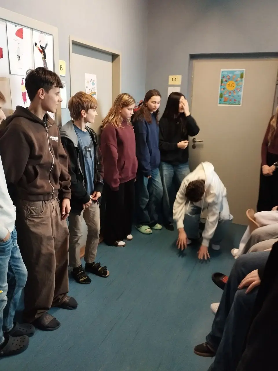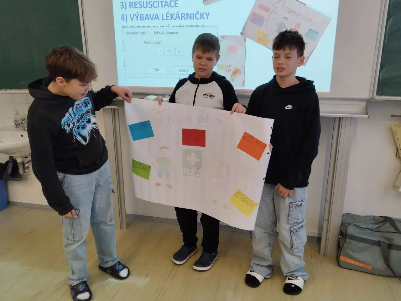 Těsně před vysvědčením absolvovali preventivní program zaměřený na bezpečnost pohybu na sociálních sítích. Poslední den prvního pololetí jsme pokračovali třídním programem, který měl několik částí. Jedna část se konala ve škole, kde kluci a děvčata zvlášť postoupili své programy, na nichž si připravili bojovku probíhající po škole i venku. V jejím rámci se byli jmenovitě představit nejen paní recepční, ale i školní akvarijní rybičce. Svedli koulovačku, ve výzvě objali paní učitelku a po skupinkách předvedli svou choreografii tanečku. Pak jsme vyrazili na brusle na kluziště Kulaťák, kde jsme byli tentokrát sami a náležitě si “užili” i aktuální chumelenici.