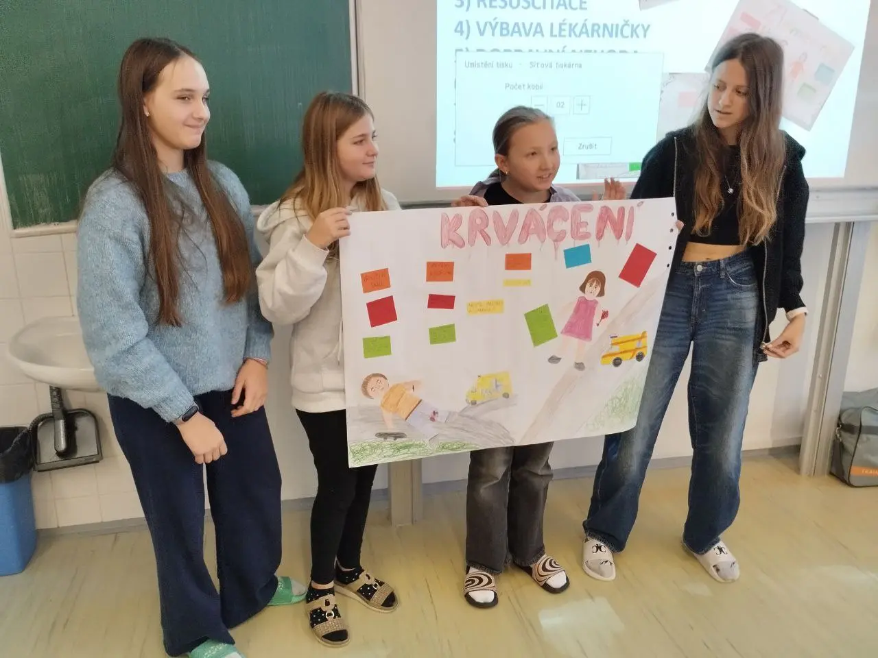 Ke konci měsíce nicméně přišla třída o dvě úžasné dámy, žákyni Nasťu Bozhok, která ve třídě našla kamarádky, a asistentku Janu Bohn, která nás věrně provázela po dvě léta. Oběma děkujeme za jejich přínos, podporu a pomoc a přejeme, ať se jim dobře daří. 🙂