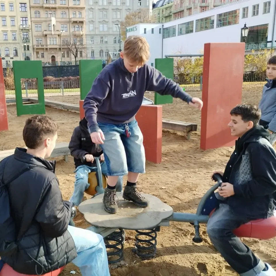 V listopadu jsme se po podzimních prázdninách rozjížděli poněkud pomaleji, čekalo nás čtvrtletí, spousta písemek a pro mnohé i stresu. Bohužel nás z rodinných důvodů v tomto měsíci opustila naše nová asistentka, takže jsme opět osiřeli. Ještě s námi však před 17. listopadem stačila vyrazit právě po stopách 17. listopadu. Zahájili jsme na Letišti Václava Havla a pokračovali po stopách tehdejšího studentského průvodu na Národní třídu. Cestou jsme se ještě zastavili na Žofíně a udělali si velkou přestávku na místním hřišti.