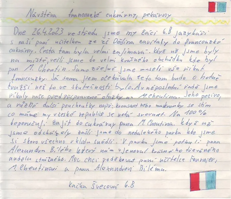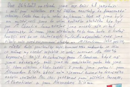 Žáci si připravili krátké a jednoduché otázky, které odpovídaly jejich francouzským jazykovým schopnostem po osmi měsících výuky na naší škole