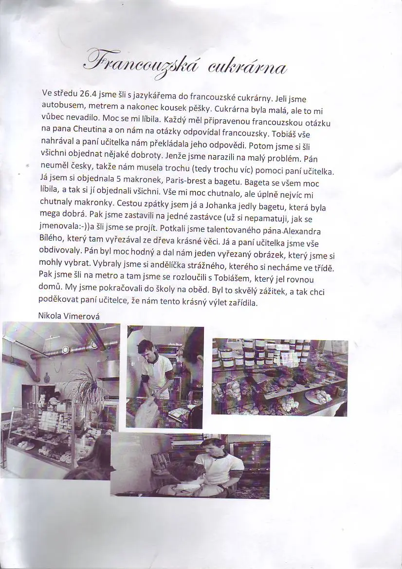 Tento projekt se zaměřuje na propojení francouzské a české kultury prostřednictvím jazykové výuky a poznávání francouzského kulturního dědictví v Praze. V praxi si žáci procvičovali své jazykové dovednosti jako objednat si pekařské a cukrářské výrobky v francouzštině, a aktivně používat čísla a jiné výrazy, aby se dorozuměli s M. Cheutin.