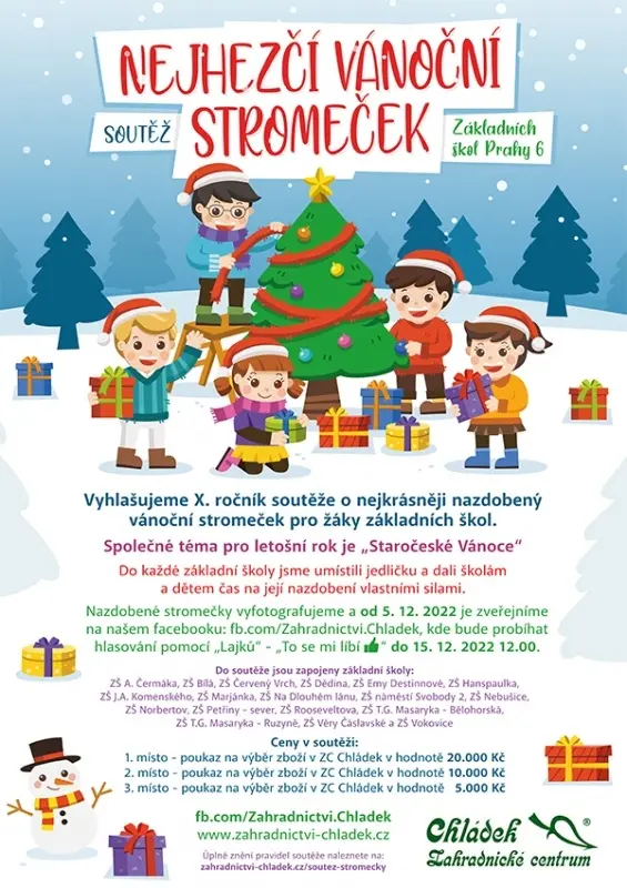 Škola se každoročně zapojuje do soutěže o nejkrásnější vánoční stromeček škol Prahy 6 pořádanou zahradnictvím – Chládek.