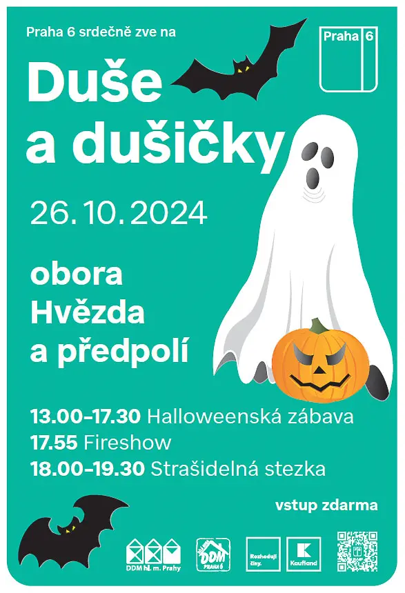 dovolujeme si Vás a Vaše žáky pozvat na tradiční akci Městské části Praha 6 DUŠE A DUŠIČKY, která se koná v sobotu 26. října 2024 od 13:00 v oboře Hvězda a na jejím předpolí.