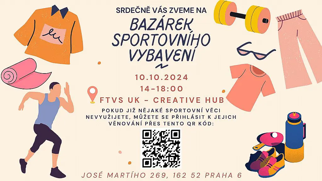 Pozvánka na “Bazárek sportovního oblečení a vybavení na FTVS” 10.10. 2024